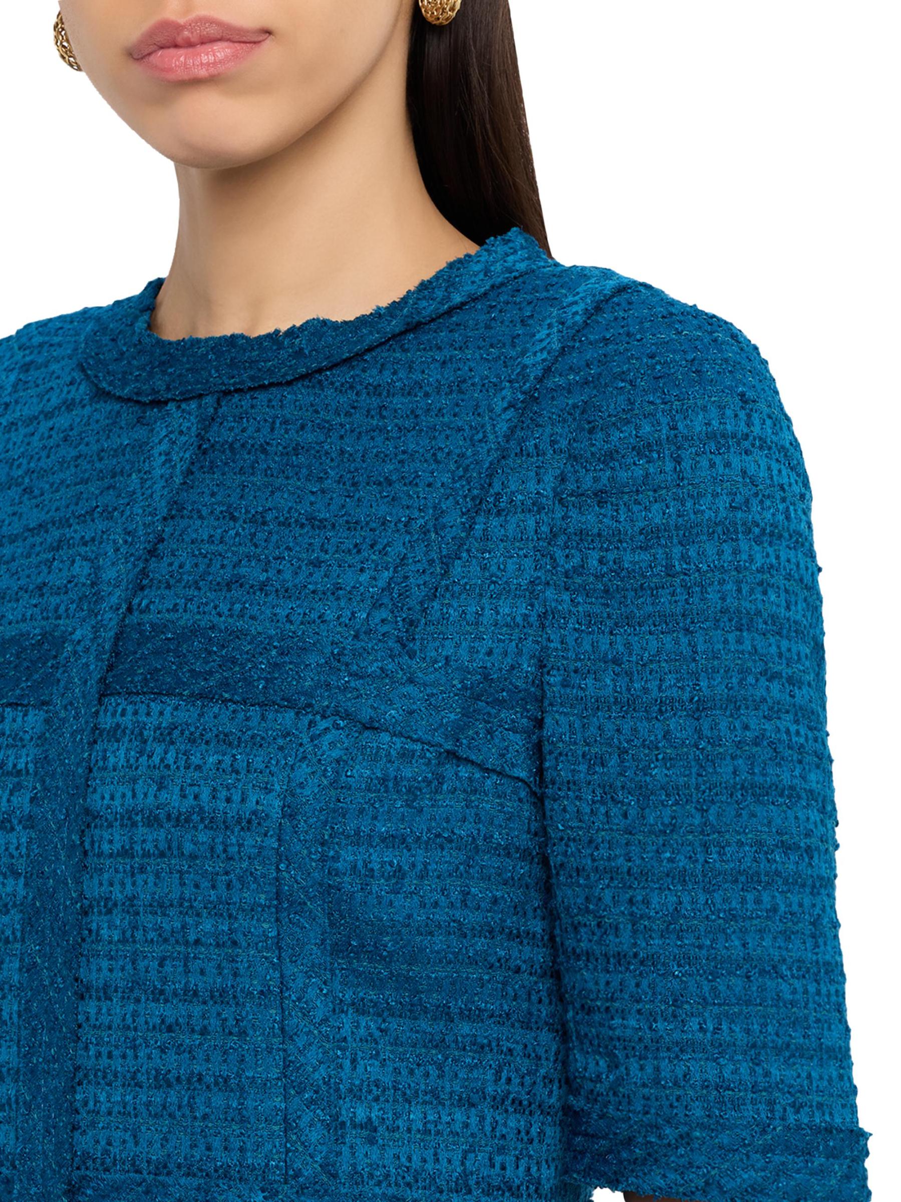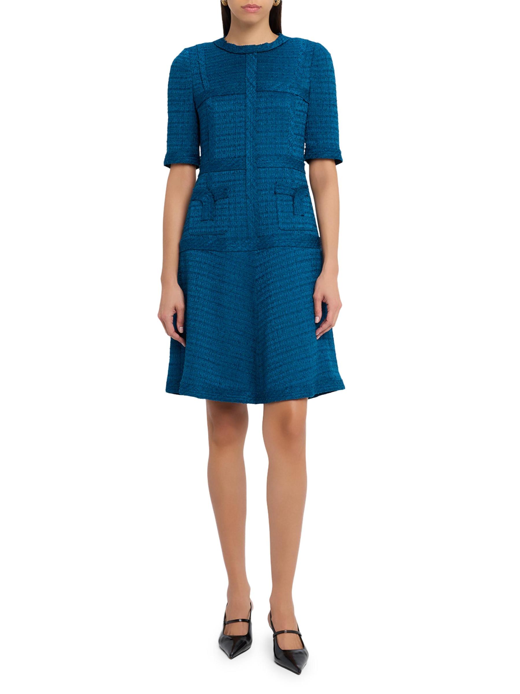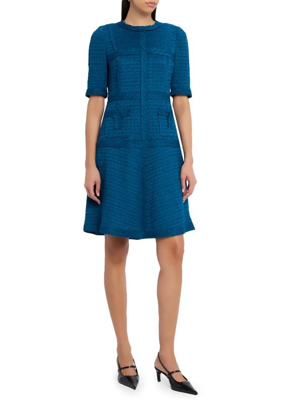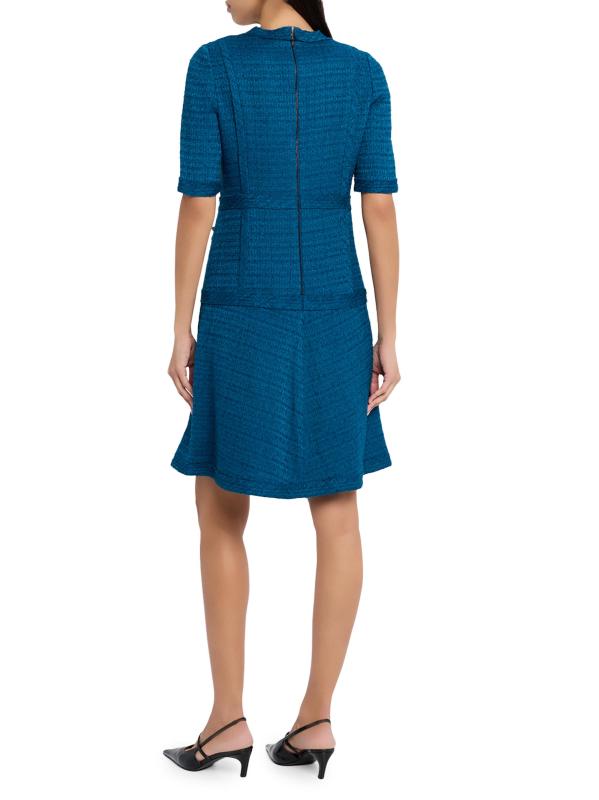 يتكون هذا الفستان المُغمد من قماش التويد المعدني المخطط.رقبة على شكل جوهرة أكمام بطول الكوع إغلاق بسحّاب خلفي مخفي جيبان أماميان مبطنان 65% بوليستر/ 16% فيسكوز/ 14% أسيتات/3% إيلاستين/ 2% بوليستر معدني البطانة: 100% بوليستر تنظيف جاف مستوردة