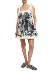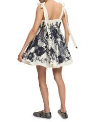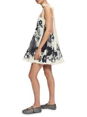 يتميز فستان ميكي الصغير من Alémais بنمط الأزهار الجرافيكي على طراز السبعينيات مع صورة ظلية على شكل بيبي دول.