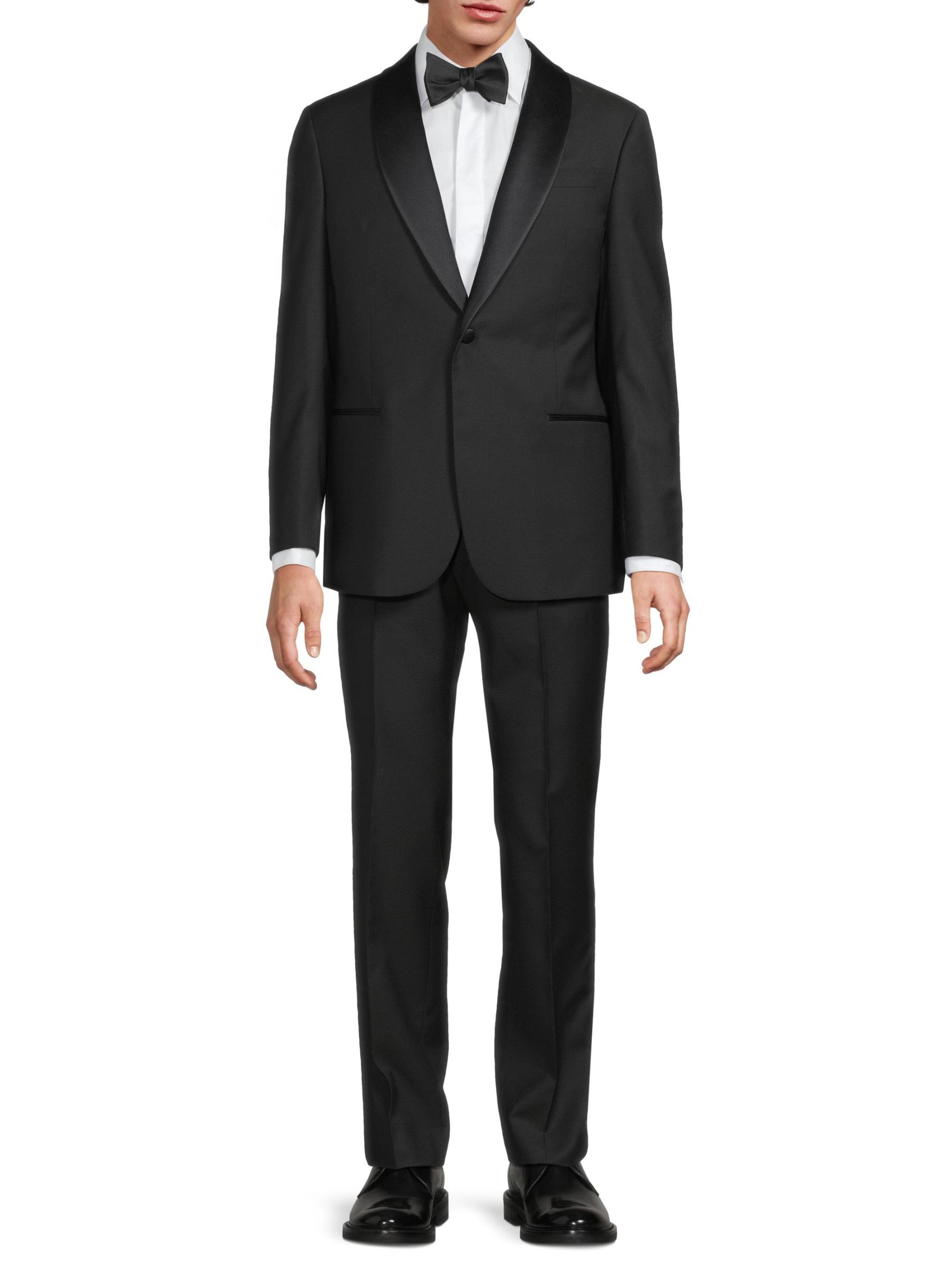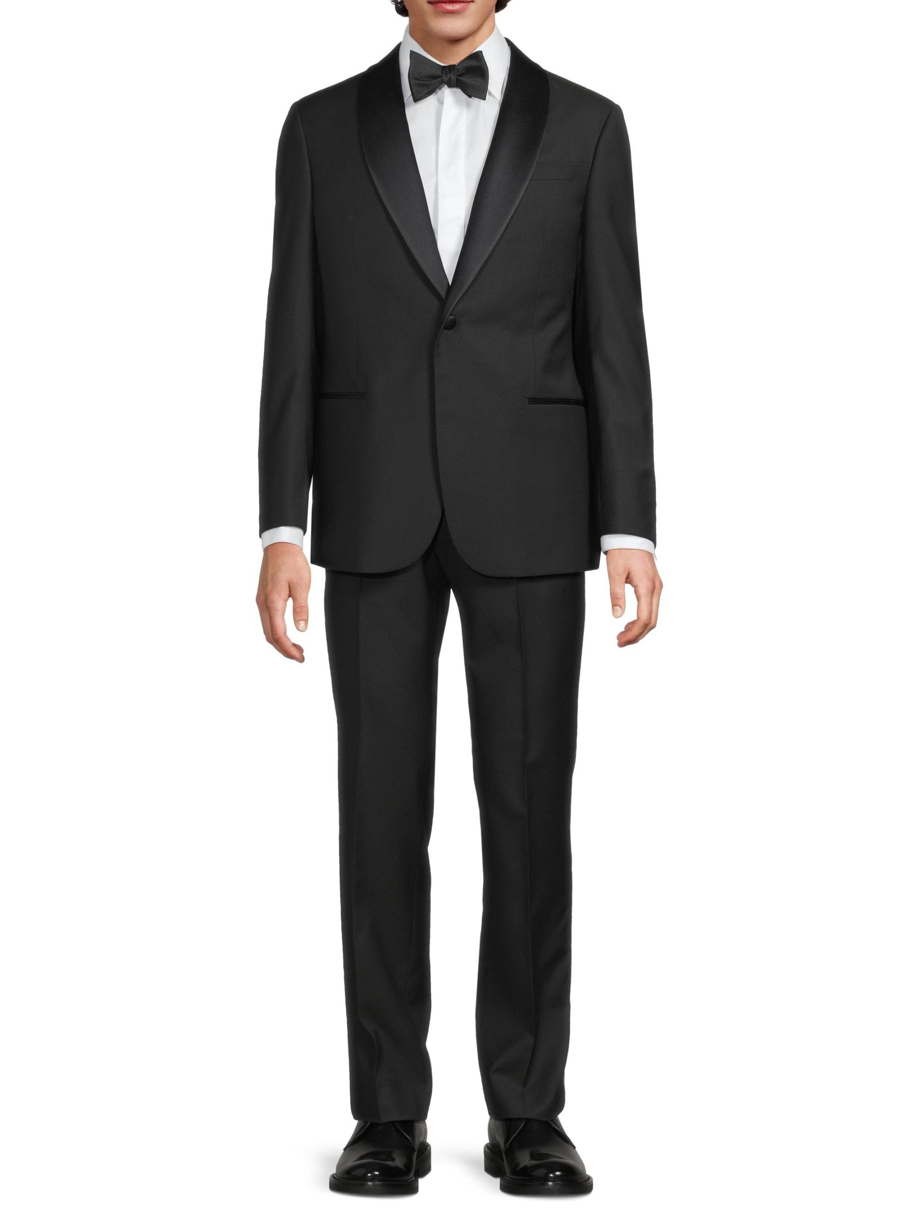 بدلة توكسيدو أحادية الصدر من الصوف البكر بنقشة دقيقة