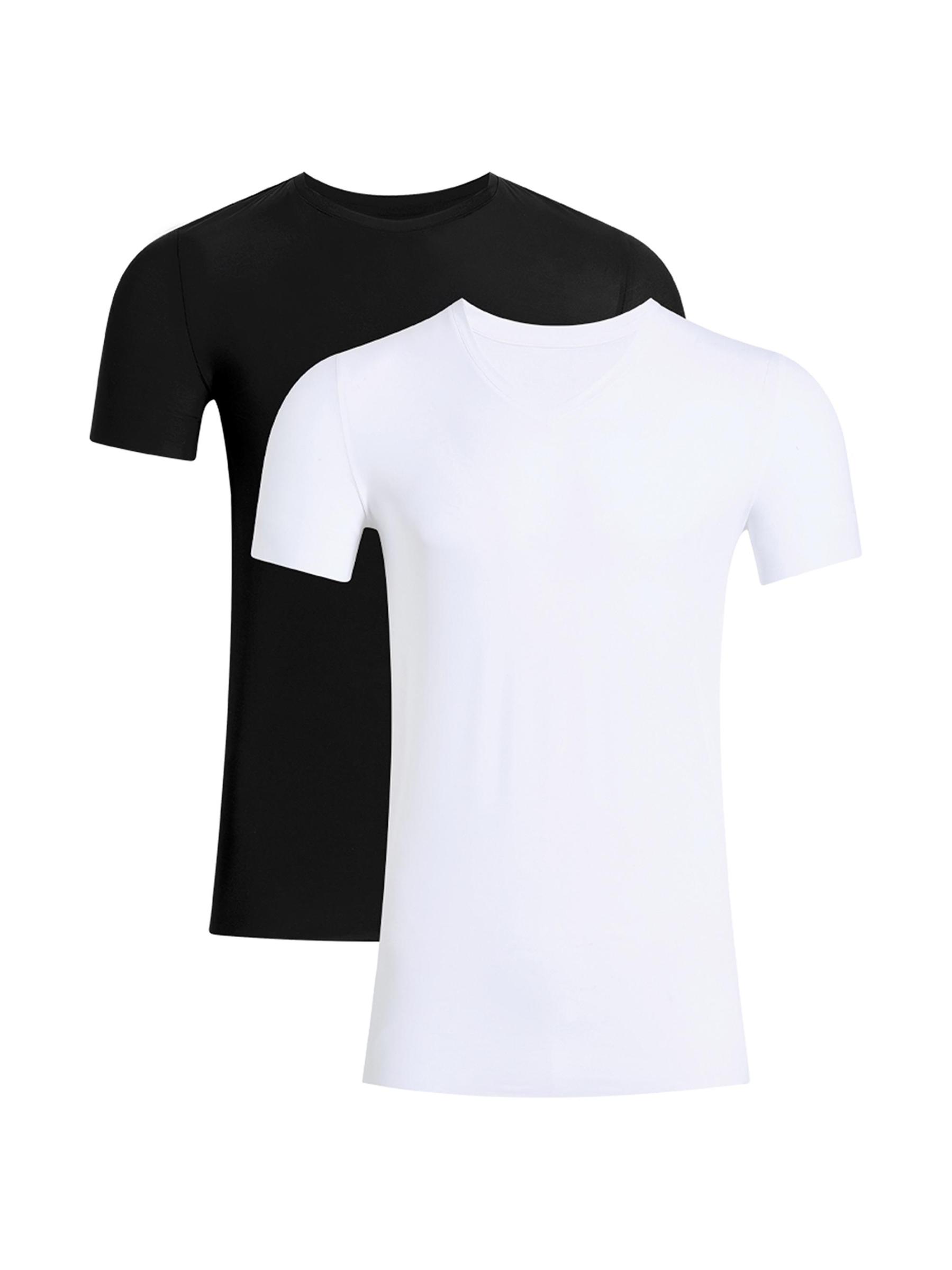طقم تيشيرتات داخلية برقبة مستديرة من الألياف الدقيقة، قطعتان
