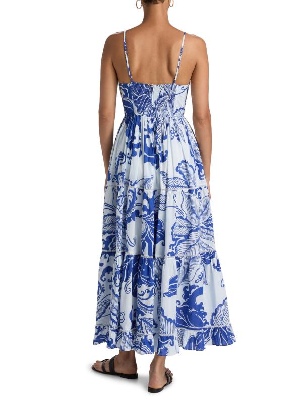 صُمم فستان ميلينا المتوسط من Poupette St Barth من القطن بزخرفة مرجانية. تتميّز هذه القطعة، المصممة بتصميم متدرج، برقبة على شكل حرف V وأحزمة قابلة للتعديل.