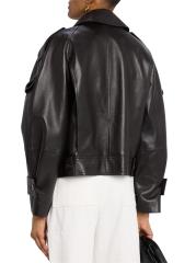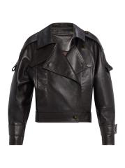 يجمع جاكيت Miles المصنوع من الجلد الناعم من A.L.C. بين تفاصيل الخندق المستوحاة من الطراز القديم والتصميم الكلاسيكي لراكبي الدراجات النارية.