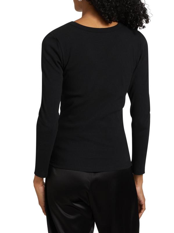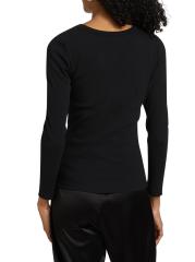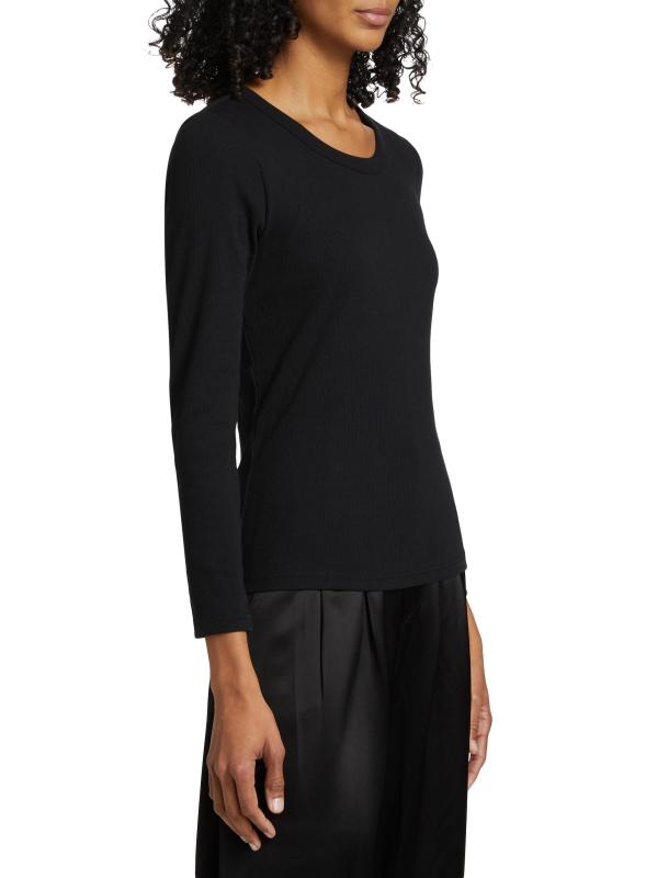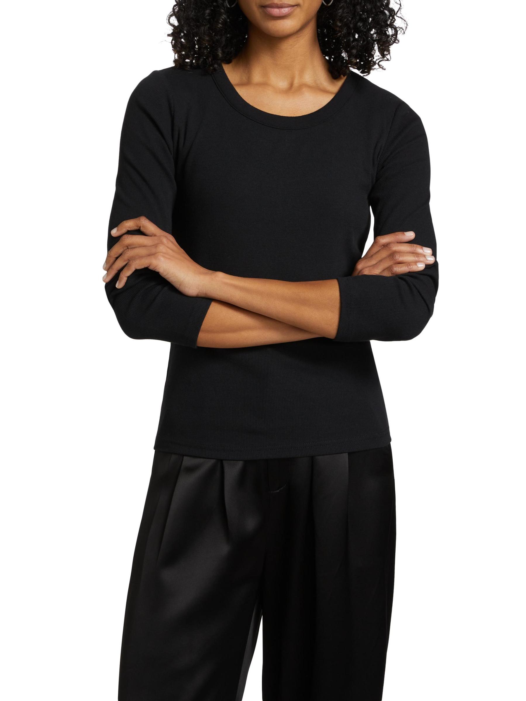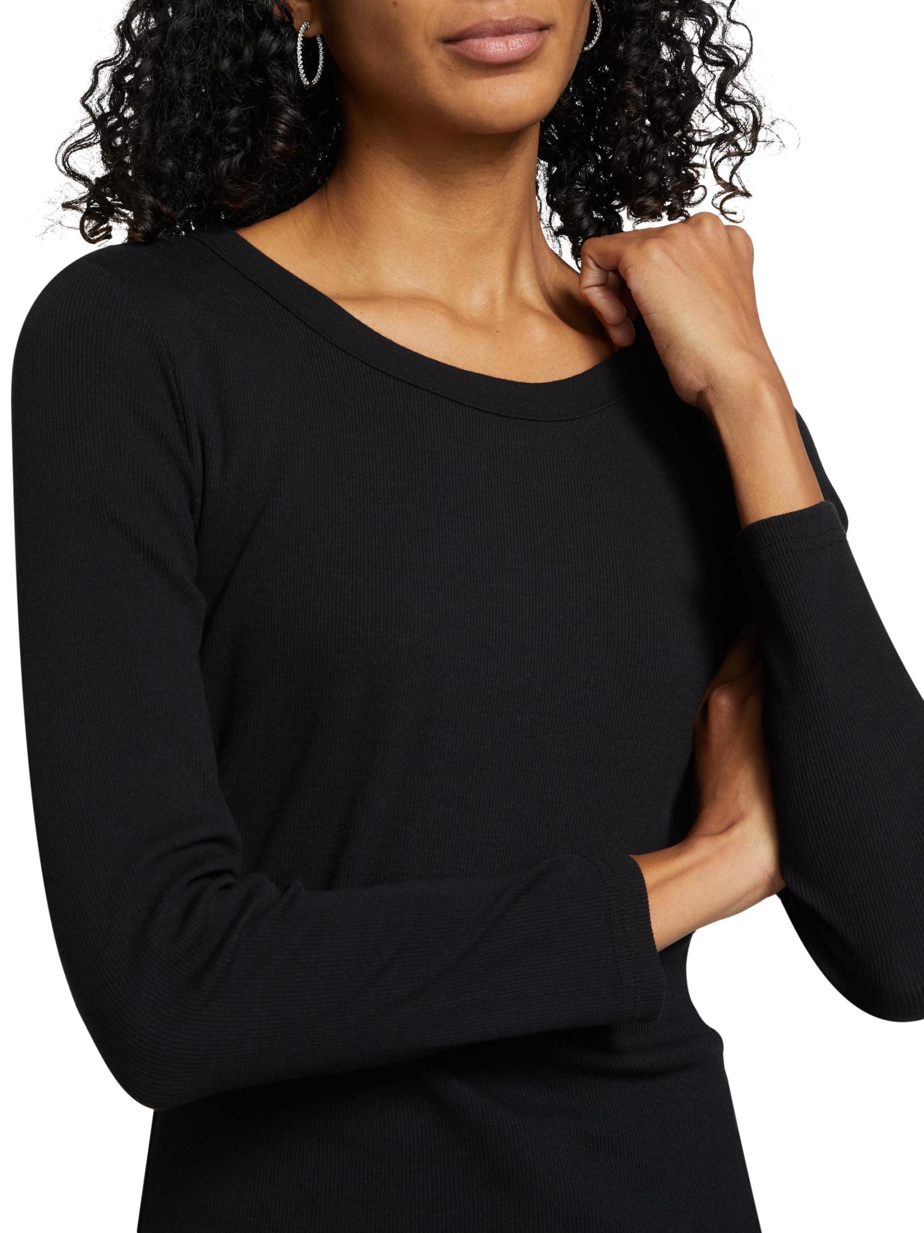 بلوزة ميلا المحبوك المضلعة من بابينيل مصنوعة من القطن القابل للتمدد القابل للتهوية. يتميز نمط البلوفر هذا برقبة دائرية وأكمام طويلة وحمالة صدر مدمجة على الرف.
