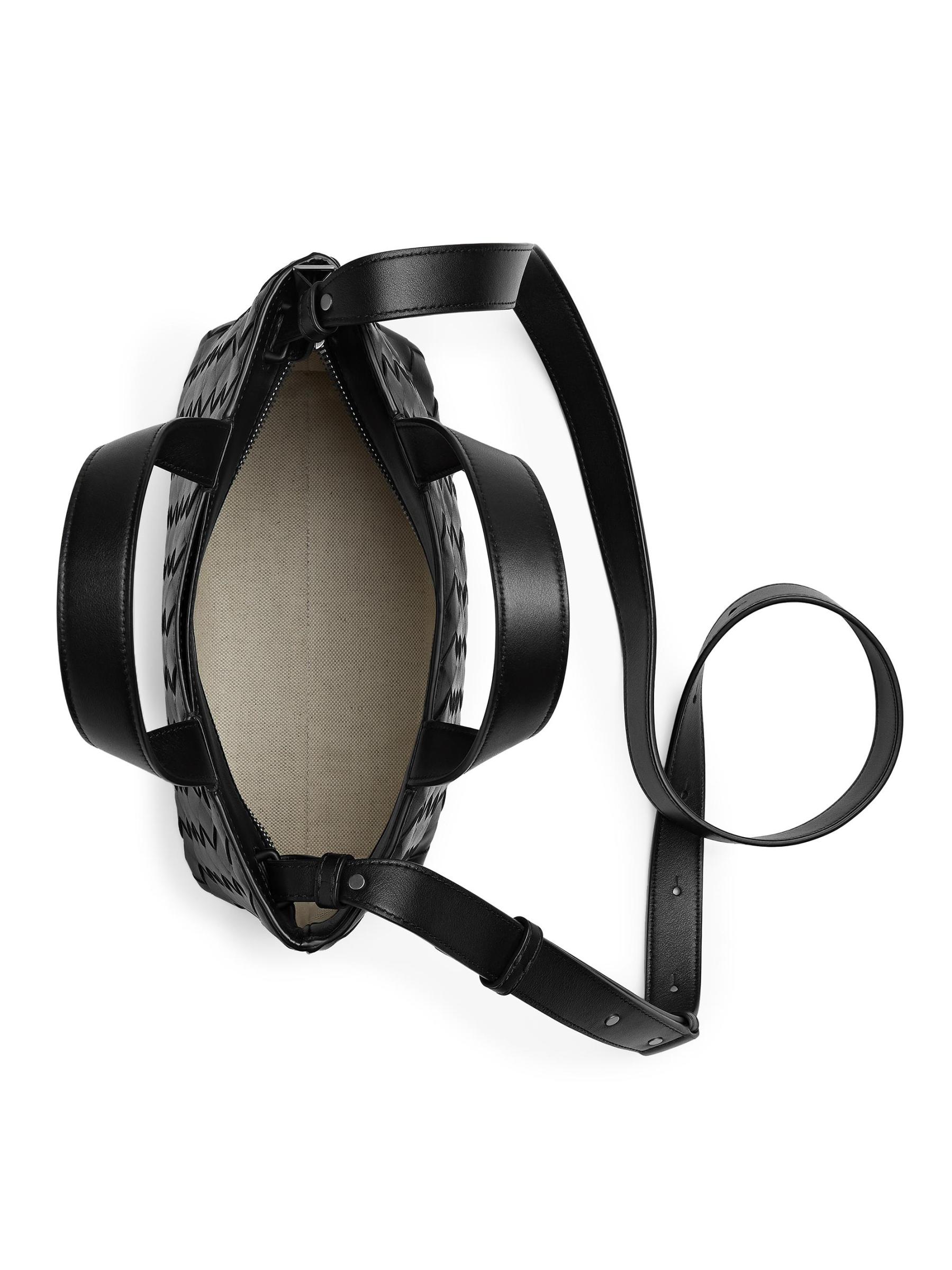 هذه الحقيبة الصغيرة من Bottega Veneta مصنوعة من جلد Intrecciato المنسوج في إيطاليا. يُضفي حزام الكتف القابل للتعديل والقابل للإزالة والسحّاب العلوي إمكانية ارتداء هذا التصميم بشكل رائع.