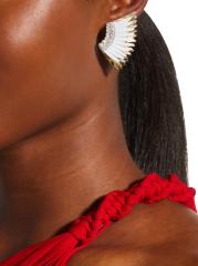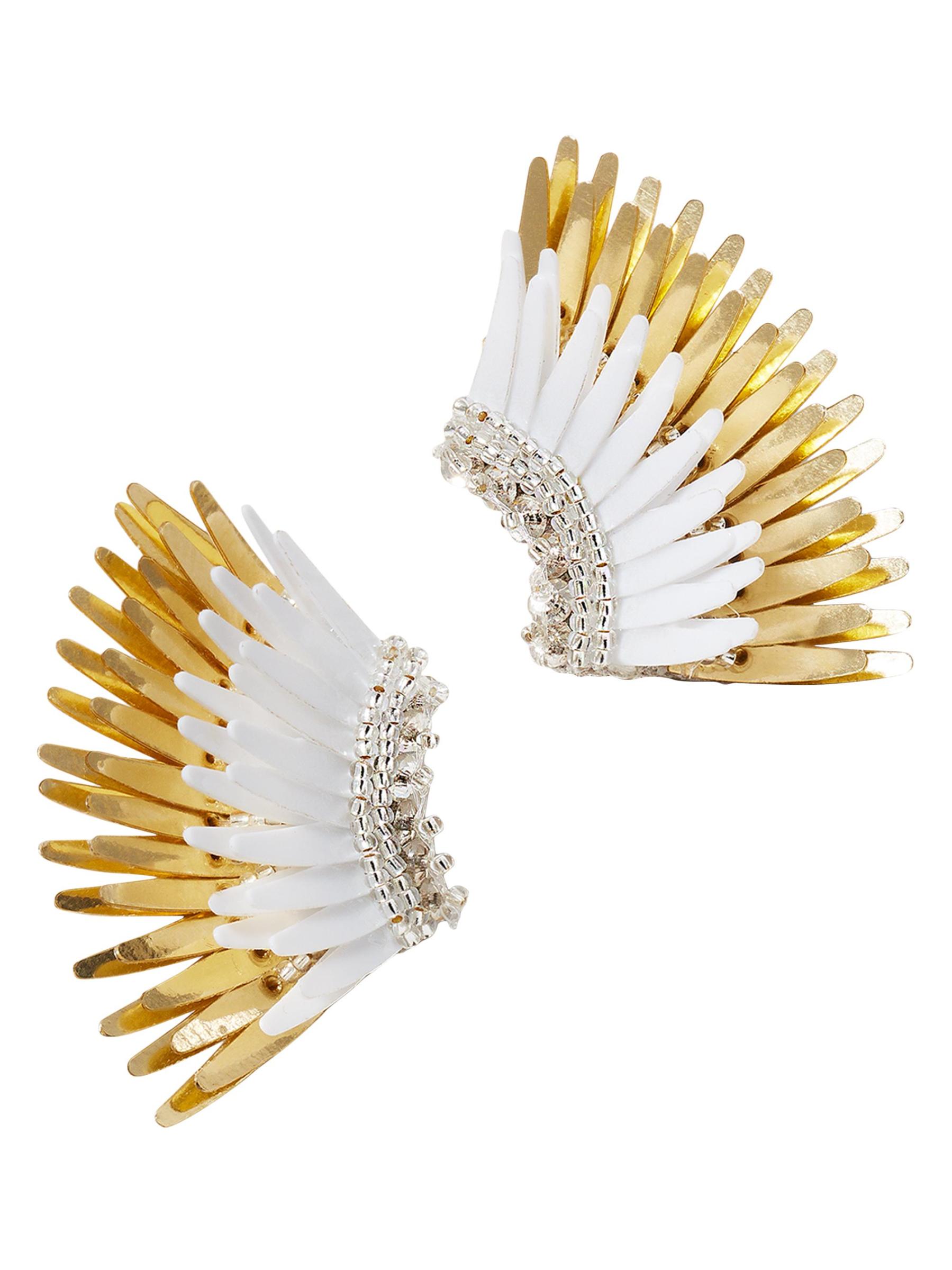 تتميز أقراط Mini Madeline الجلدية من Mignonne Gavigan بشكل ريشي مع الخرز اللامع والترتر والكريستال.