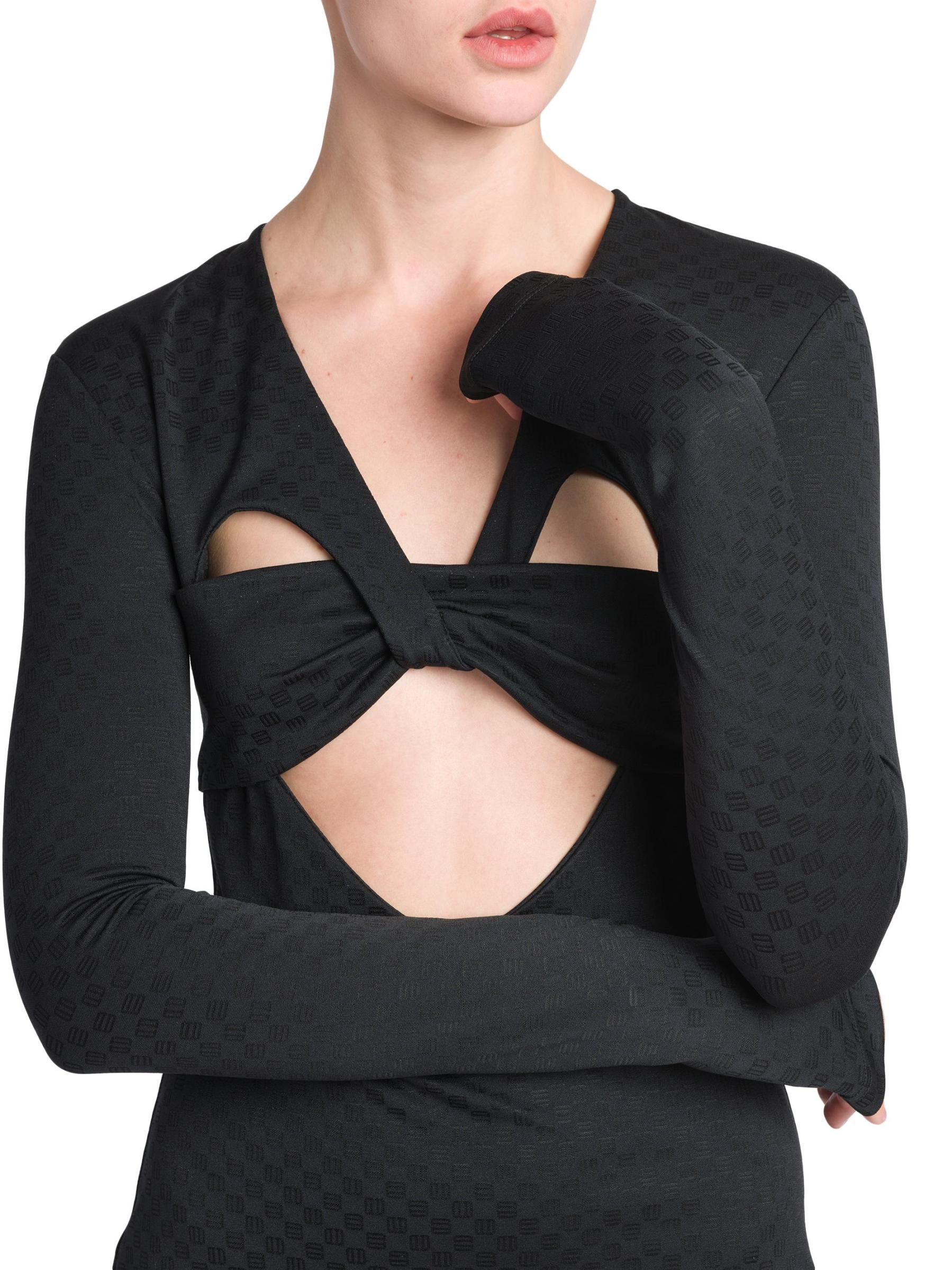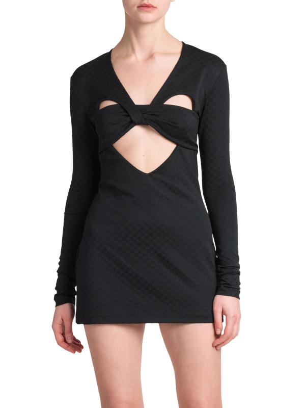 يُزين هذا الفستان الصغير الأنيق من Ambush بنقشة المونوغرام الصغيرة، ويناسب هذا الشكل. يتميز هذا الطراز بفتحة كبيرة على شكل قلب عند الصدّار، مما يُضفي طابعًا رومانسيًا.رقبة على شكل حرف V أكمام طويلة إغلاق بسحّاب خلفي 77% بوليستر/ 23% إليستين يُغسل في الغسالة صُنع في إيطاليا
