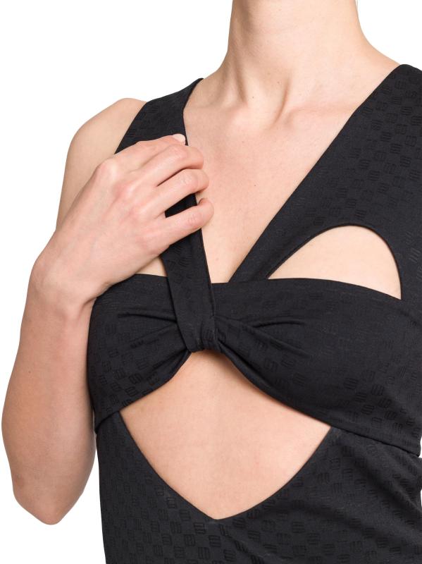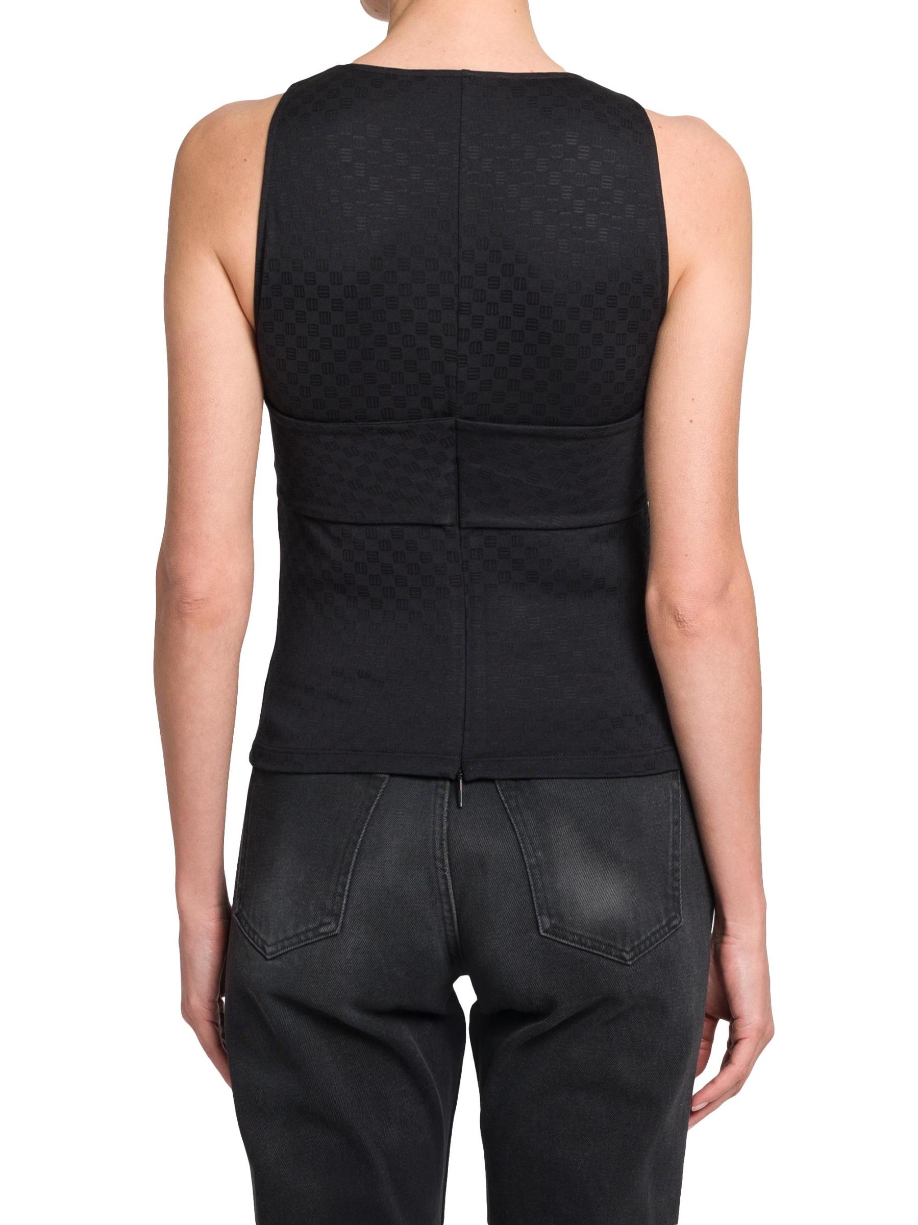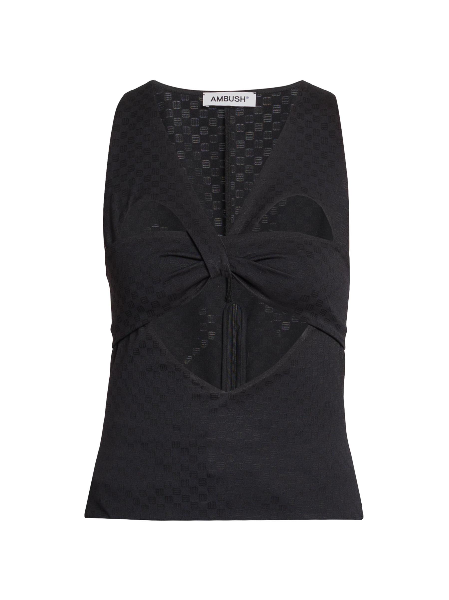 تتميّز بلوزة Ambush الديناميكية بفتحة مثيرة على شكل قلب عند الصدّار. يتميز هذا التصميم بلا أكمام، الذي تم تصميمه بطبعة مونوغرام صغيرة، بتصميم ساحر.