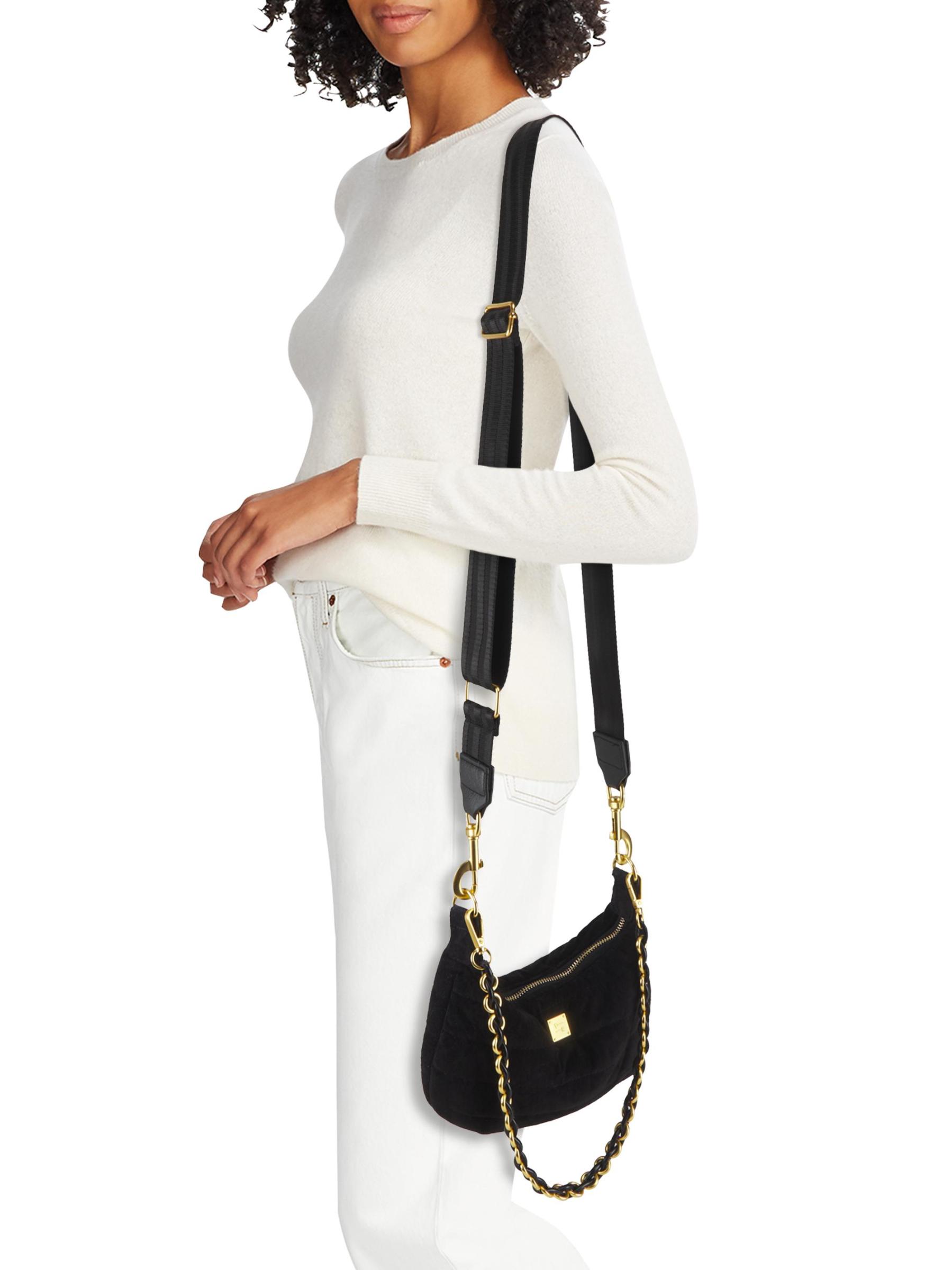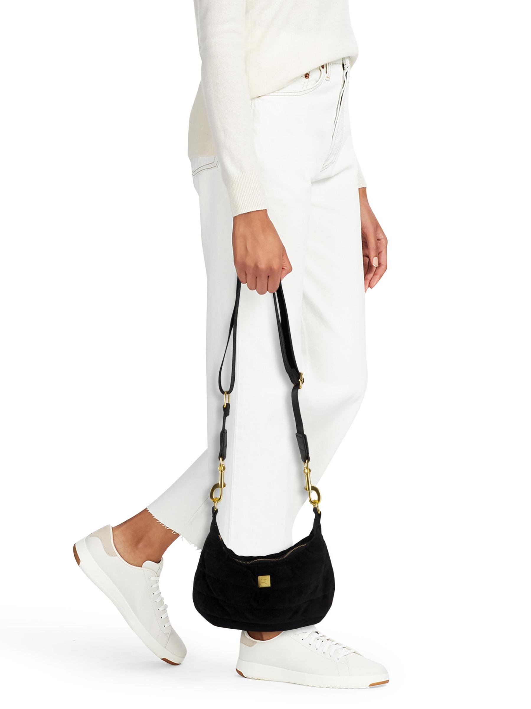 تتميز حقيبة الكتف Mini Moon هذه المصنوعة من الجلد المدبوغ من Think Royln بأحزمة كتف قابلة للإزالة لخيارات حمل متعددة الاستخدامات.حزام كتف بسلسلة قابل للإزالة حزام كتف قابل للتعديل والإزالة الجزء الداخلي: جيب واحد بسحّاب وجيب منزلق حقيبة الغبار إغلاق بسحّاب علوي جلد سويدي البطانة: بوليستر مستوردة