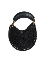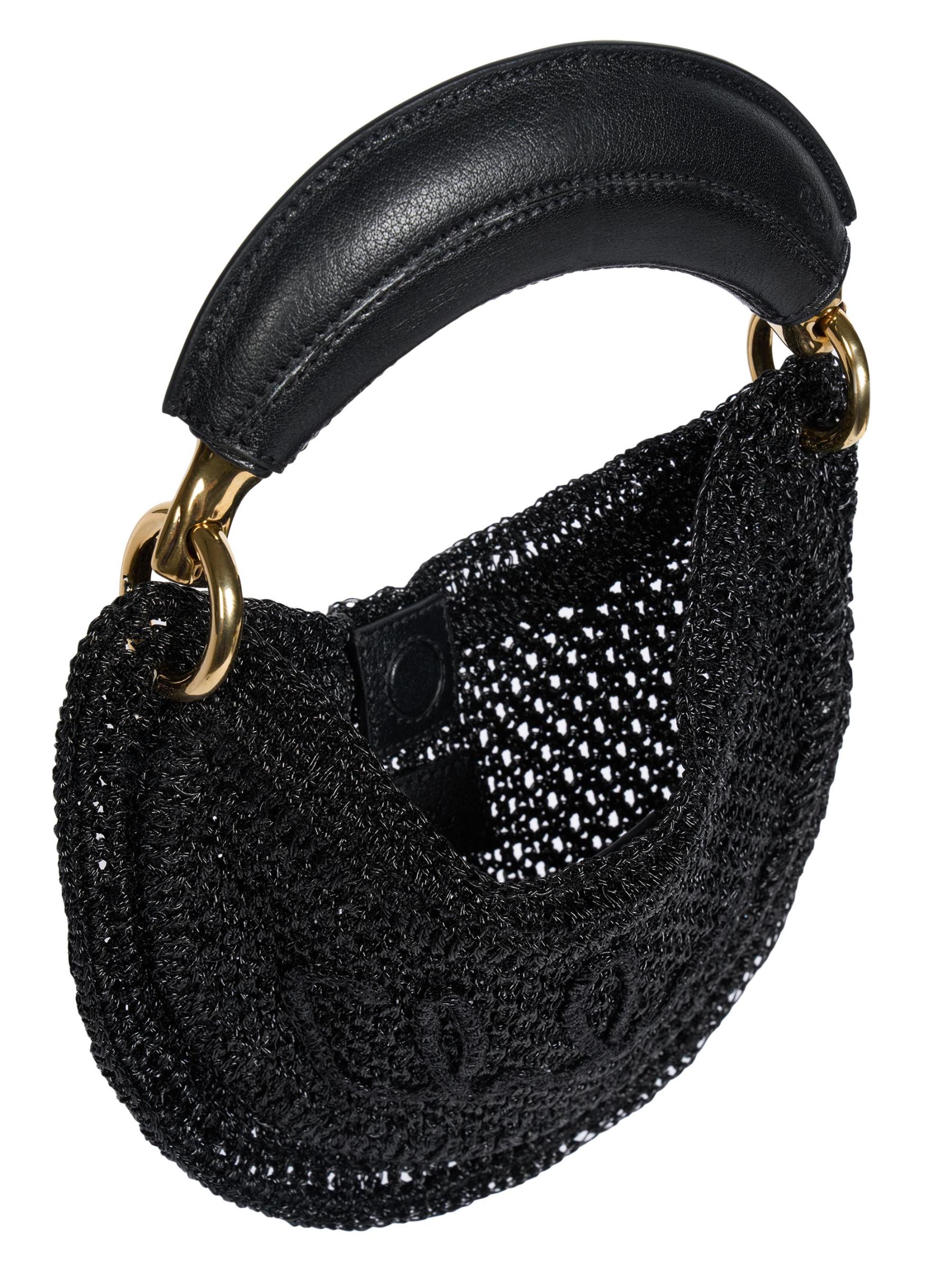 تتميّز حقيبة «ميني سمر بانانا» من كلوي، المصنوعة من نسيج كروشيه بتفاصيل لامعة لامعة، بمقبض علوي سميك مصنوع من الجلد المبطّن وأجزاء صلبة ذهبية اللون.