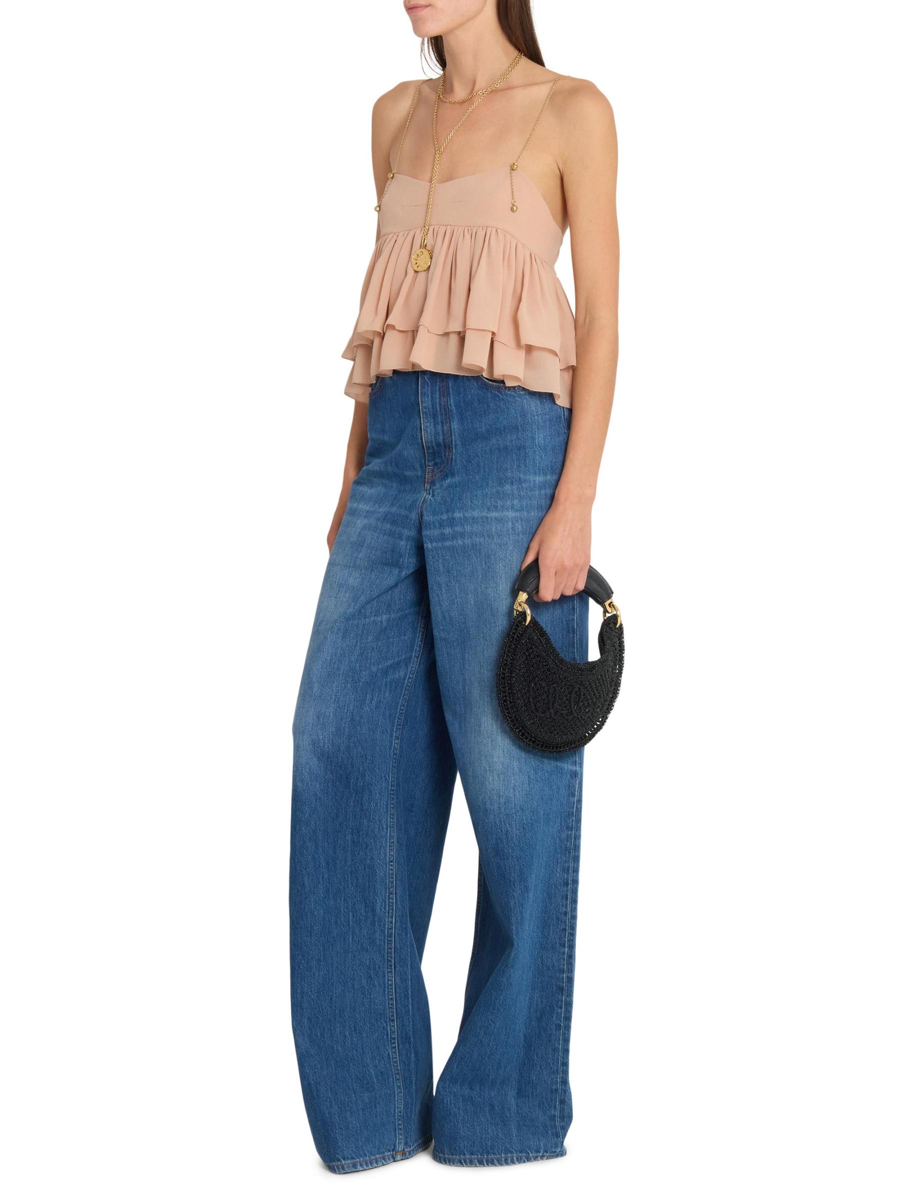 تتميّز حقيبة «ميني سمر بانانا» من كلوي، المصنوعة من نسيج كروشيه بتفاصيل لامعة لامعة، بمقبض علوي سميك مصنوع من الجلد المبطّن وأجزاء صلبة ذهبية اللون.المقبض العلوي قفل مغناطيسي 73% فيسكوز/ 14% نايلون/ 13% ورق الزخرفة: جلد صُنع في إيطاليا