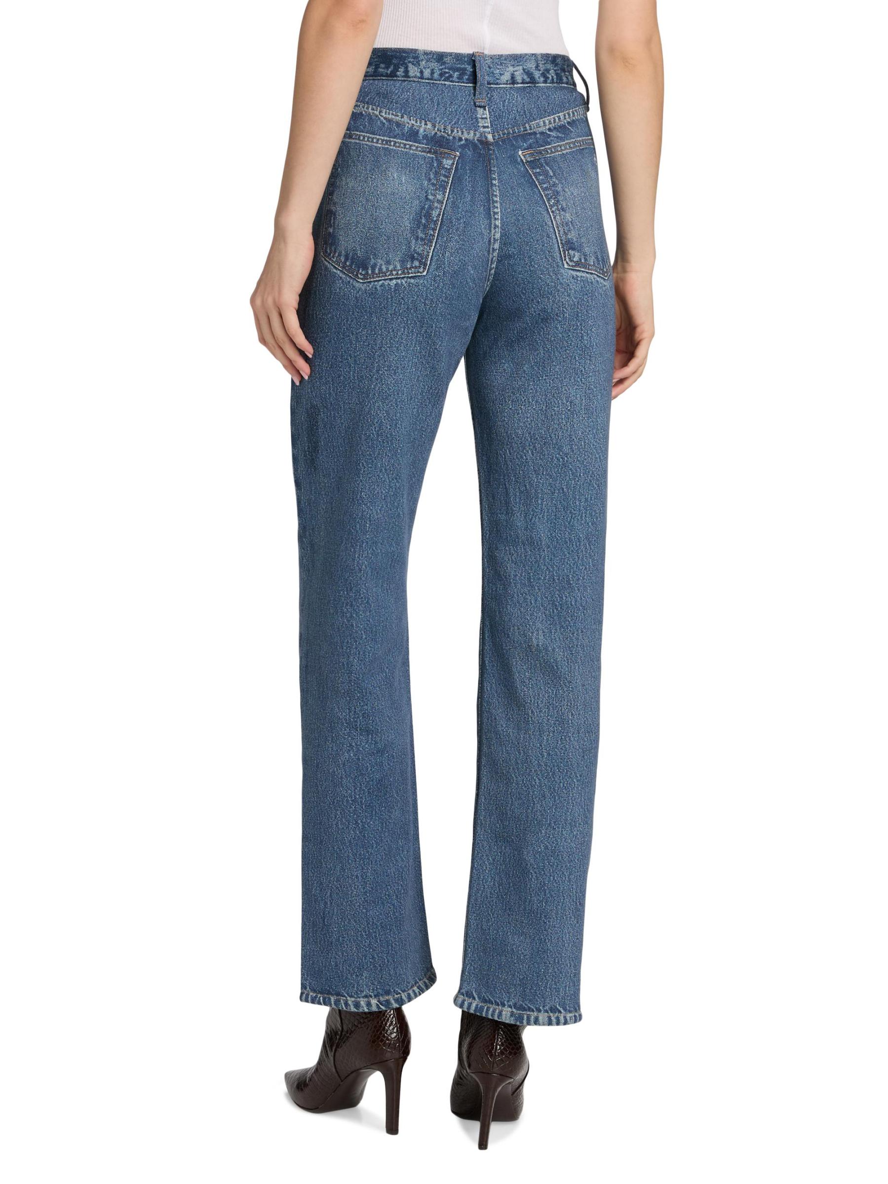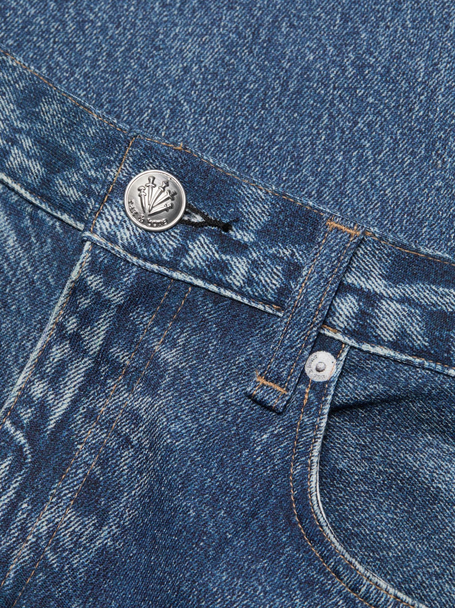 bone لالتقاط كل التفاصيل المعقدة للجينز الكلاسيكي، بدءًا من الجينز المؤلم والمتلاشي إلى الغرز الصغيرة والمسامير. تخلق تقنية الطباعة الثورية هذه خداعًا بصريًا مع الحفاظ على ملمس النسيج الأصلي الناعم ووظيفته. صُمم هذا البنطال المصنوع من نسيج قطني مطبوع، بتصميم متوسط الارتفاع وذو ساق مستقيمة ويتميز بتصميم تقليدي بخمسة جيوب.