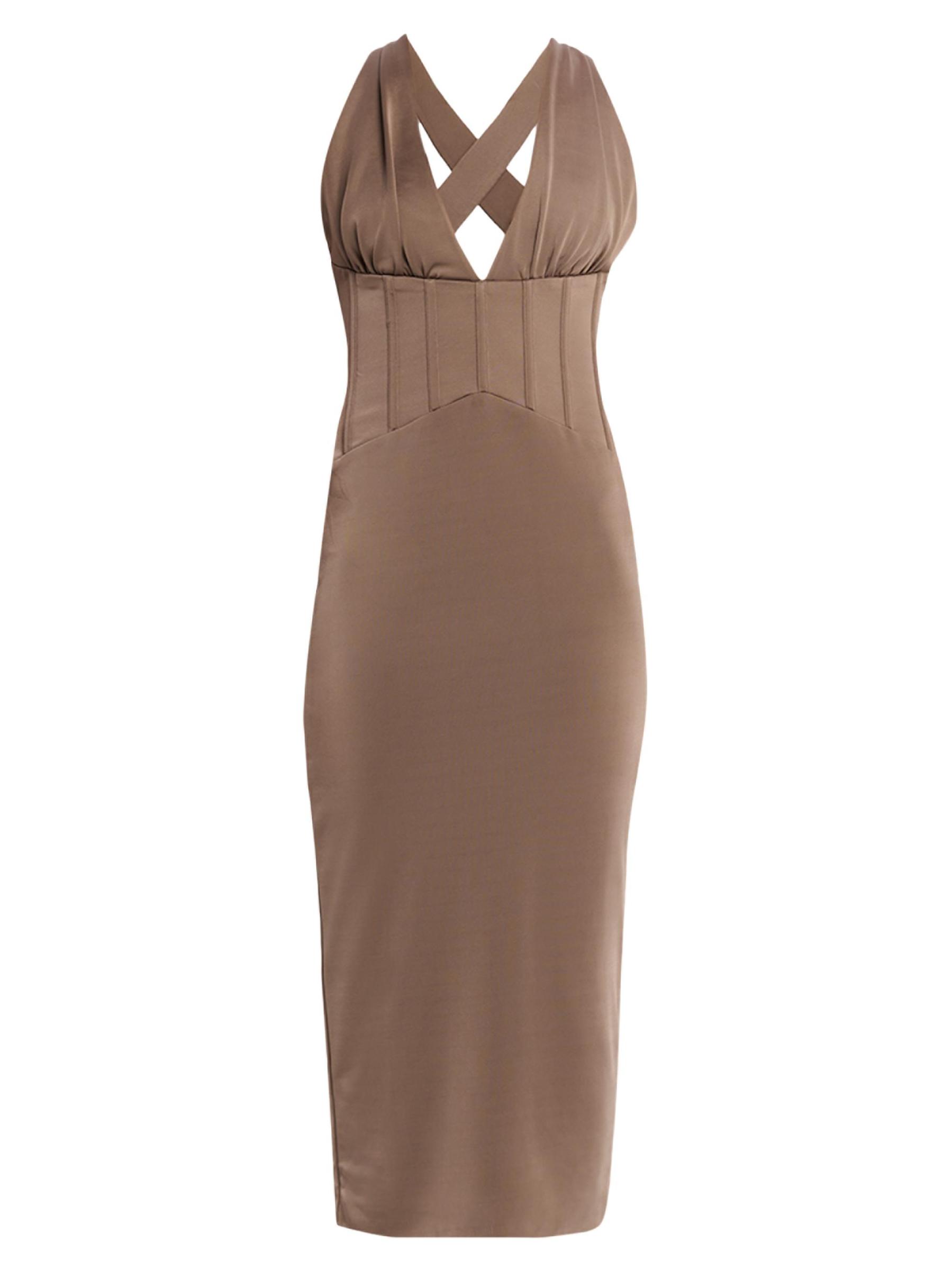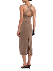 تم تصميم فستان Mischa midi من Rebecca Vallance بحزام خصر بمظهر مشد لمزيد من البنية.رقبة واسعة على شكل حرف V أحزمة رسن متقاطعة بونينغ شق خلفي إغلاق بسحّاب خلفي مخفي بوليستر/نايلون/إيلاستين البطانة: بوليستر تنظيف جاف مستوردة