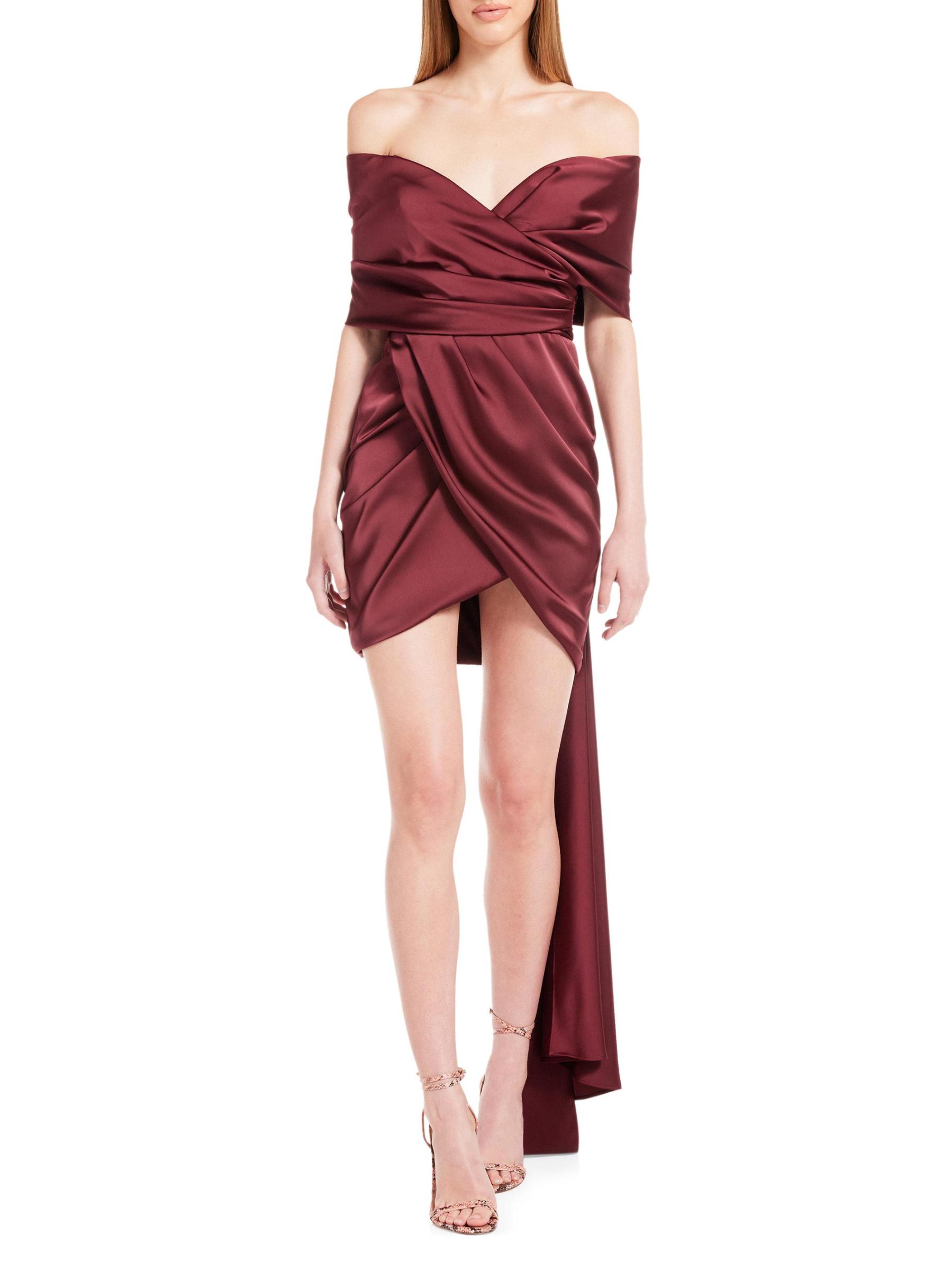 يتميّز فستان Miss Jenn القصير الرائع من كاتي ماي بصدّار مكشوف الكتفين بدون حمالات وأشرطة كتف مُجمّعة. يتميّز هذا الطراز، المصمّم بحزام خصر سميك، بحاشية منسدلة ملفوفة.