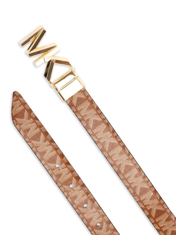 يتميز حزام Michael Kors المناسب لكل الأوقات بزخرفة الشعار بالكامل التي تعود إلى الجلد العادي، مع مشبك MK monogram.