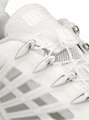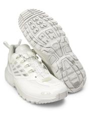 من مجموعة MM6 ميزون مارجيلا x سالومون. تم تصميم أحذية MM6 Maison Margiela الرياضية ذات الرقبة المنخفضة بألواح جانبية شفافة، وهي مزودة بنعل ضخم.