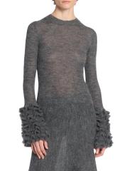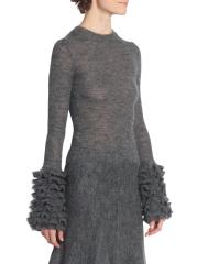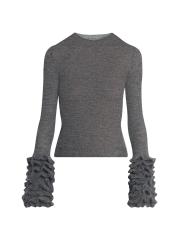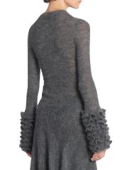 سترة Alaïa المصنوعة من مزيج الموهير المرن محبوكة في شكل ضيق مع أساور واسعة مكشكشة.رقبة على شكل جوهرة أكمام طويلة وأساور مكشكشة تسحب 56% موهير، 34% بولي أميد، 10% صوف تنظيف جاف صُنع في إيطاليا