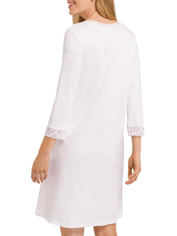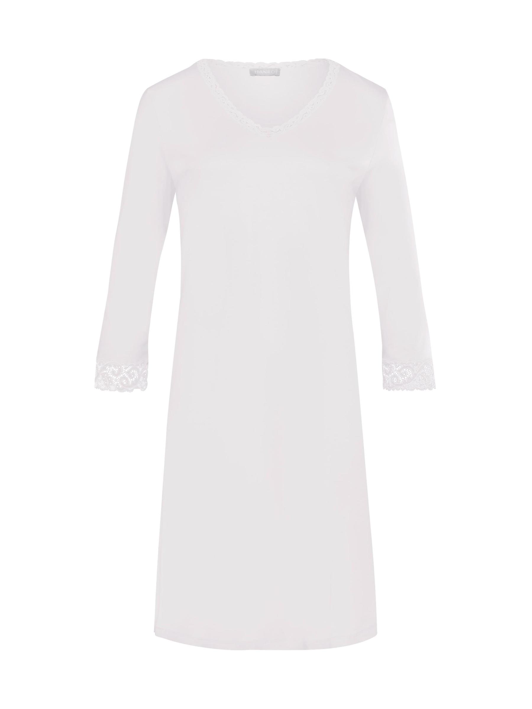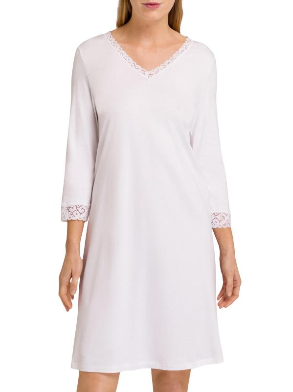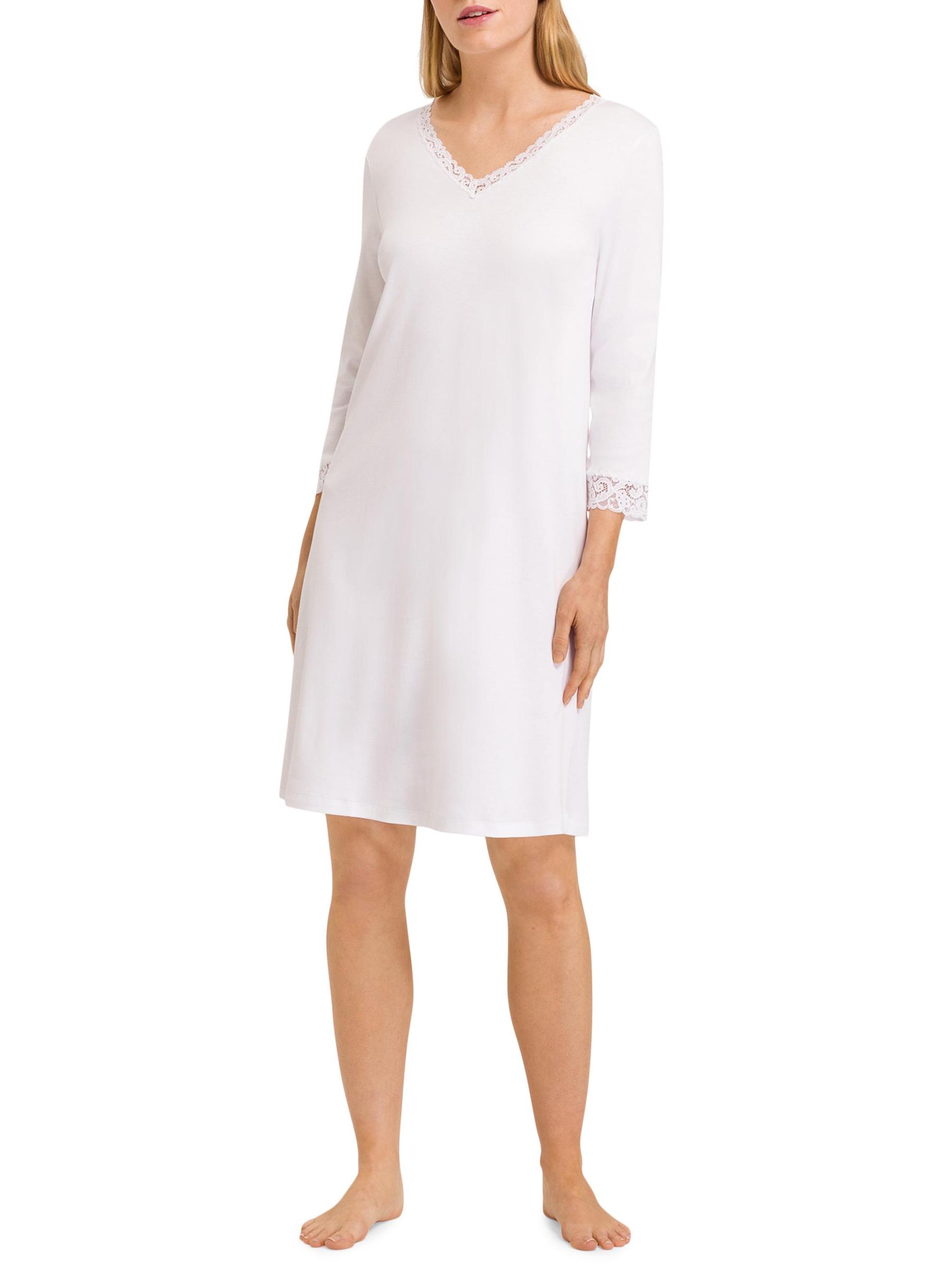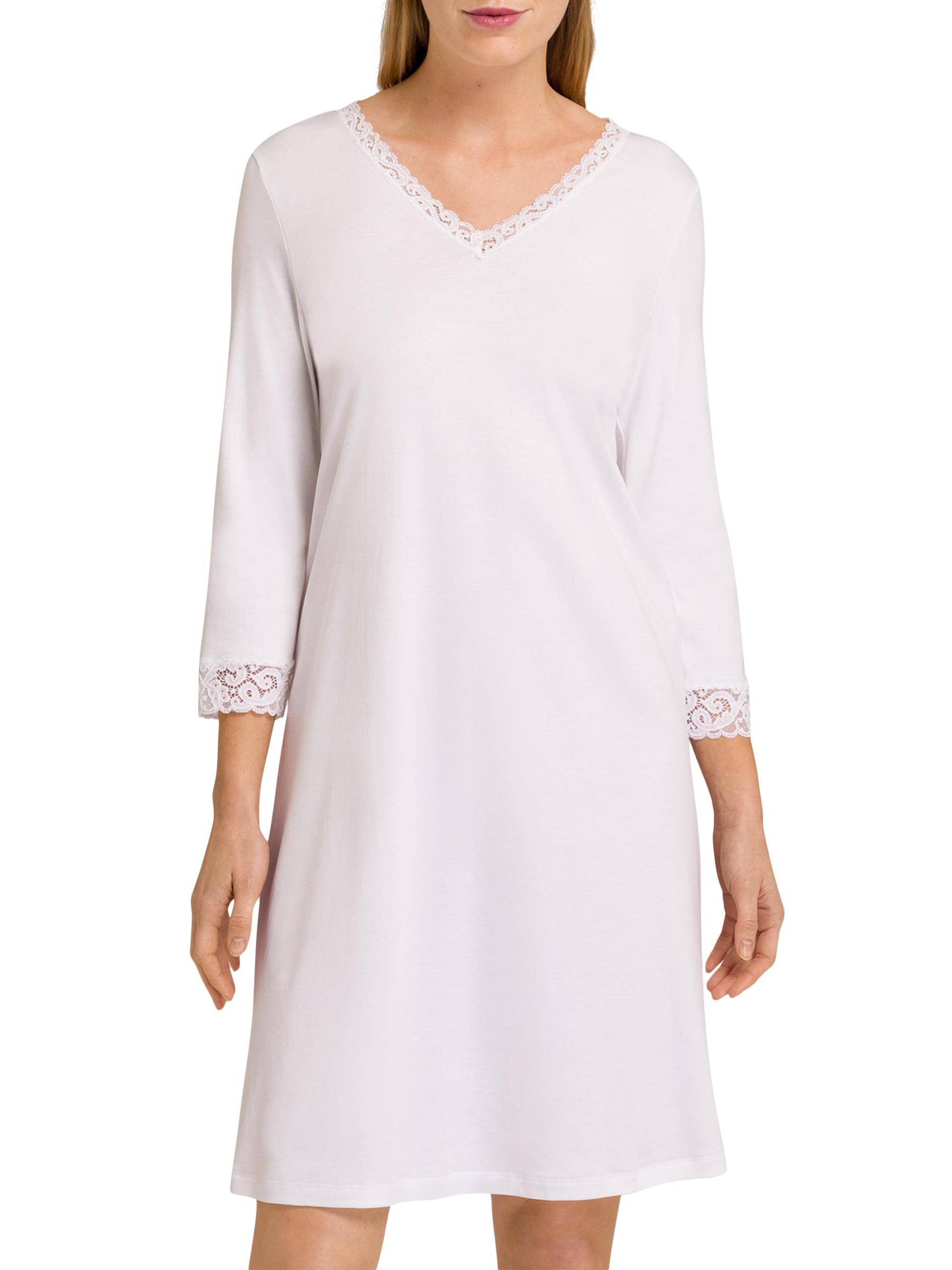 من مجموعة لحظات. يتميز فستان النوم هذا من هانرو، المصنوع من القطن الناعم بلمسة نهائية لامعة، بأكمام بطول ثلاثة أرباع وزخارف رقيقة من الدانتيل.