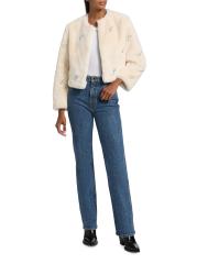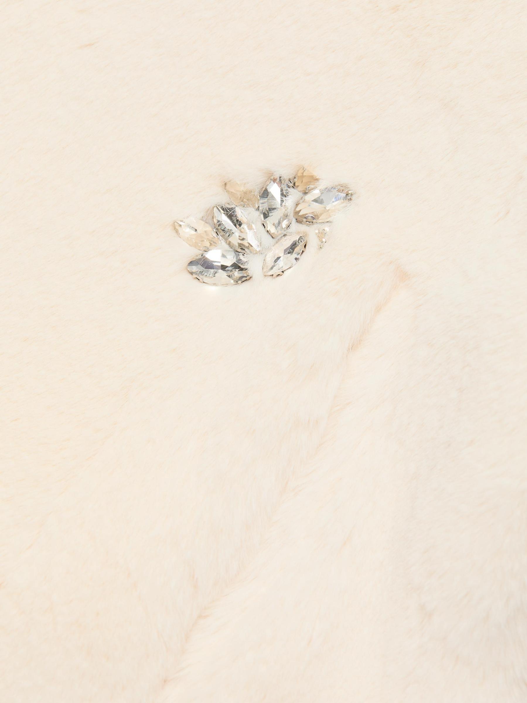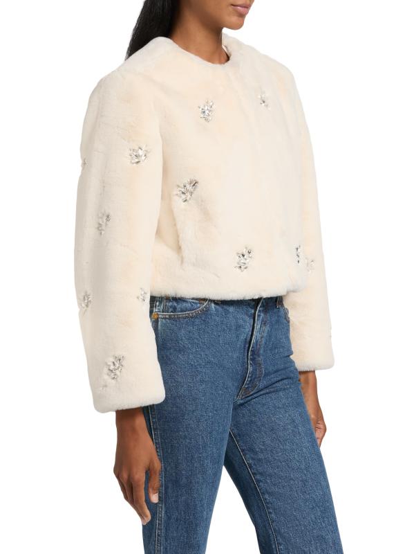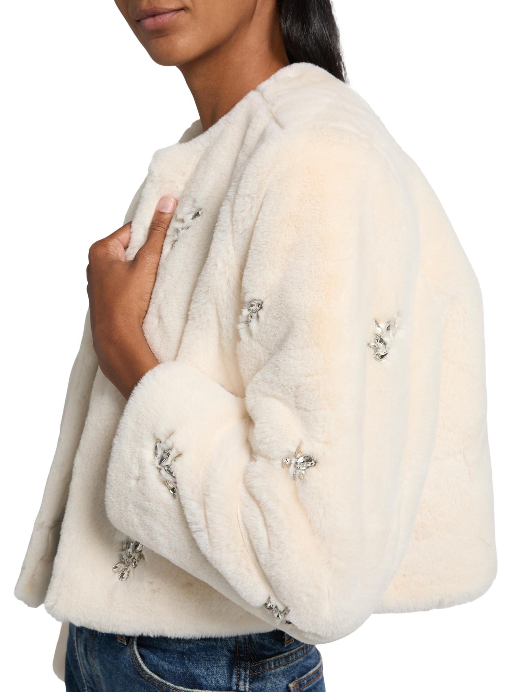 جاكيت مونيكي من الفرو الصناعي مزيّن بالكريستال