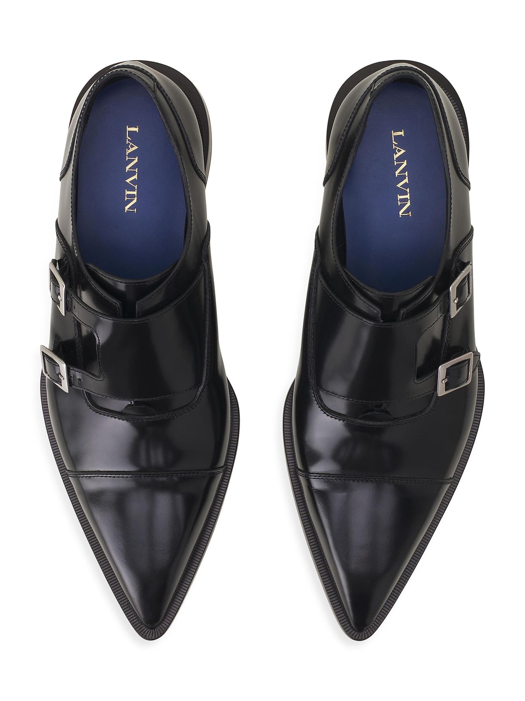 تعيد أحذية Monk الجلدية من Lanvin الأيقونية والراقية ابتكار نموذج خزانة ملابس الرجال الكلاسيكي بلمسة عصرية. يجمع تصميمها الأنيق، المعزز بإبازين مميزين، بين التقليد والجرأة، بروح مجموعة شتاء 2025. تجسد هذه الأحذية التوازن المثالي بين الأناقة الخالدة والابتكار المعاصر.