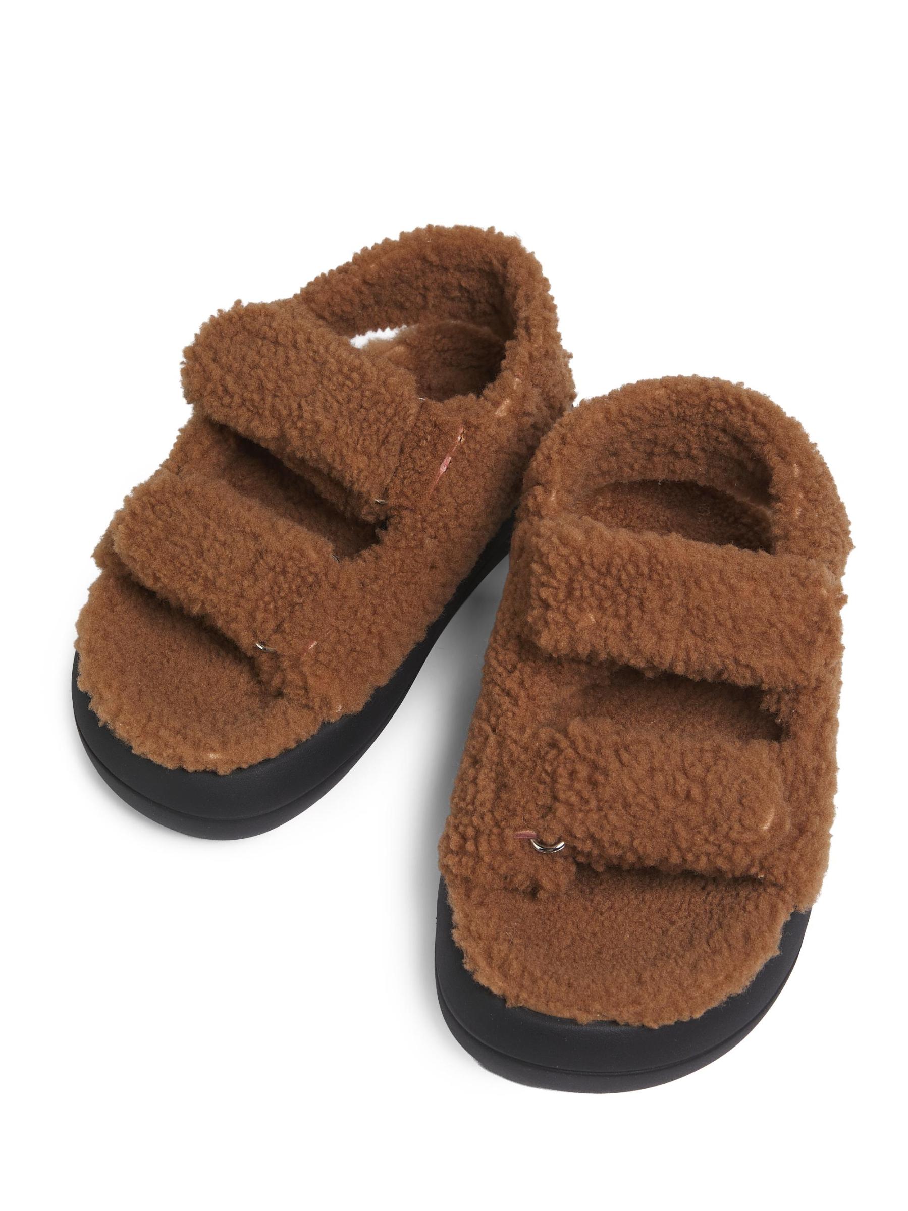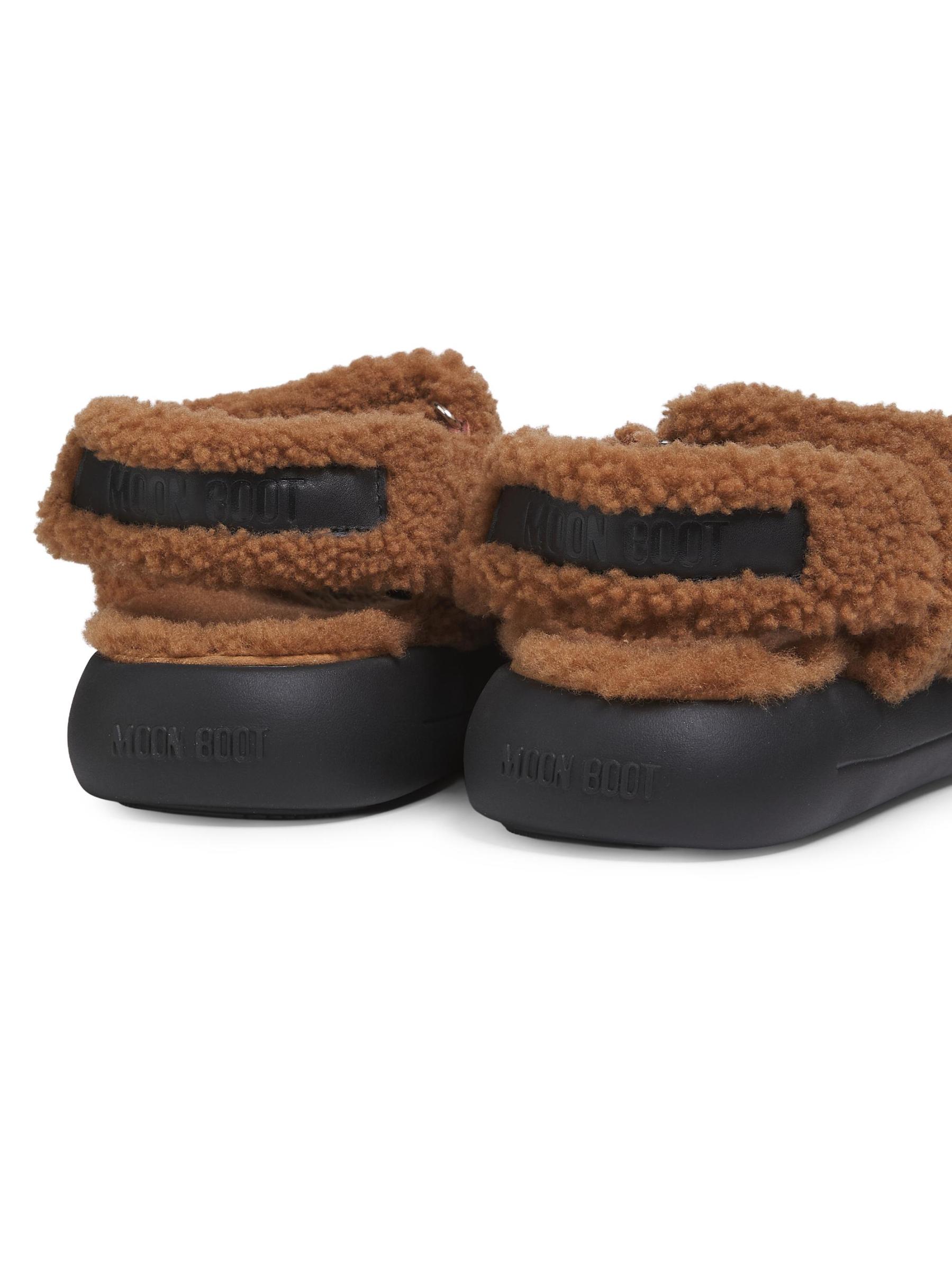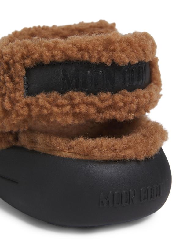 يعزز صندل Moon Boot من Moon Boot التصميم ذي الحزامين مع الجزء العلوي المصنوع من الشيرلينغ الناعم والنعل المطاطي المتين.