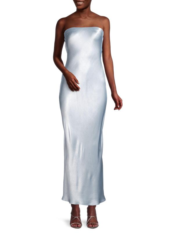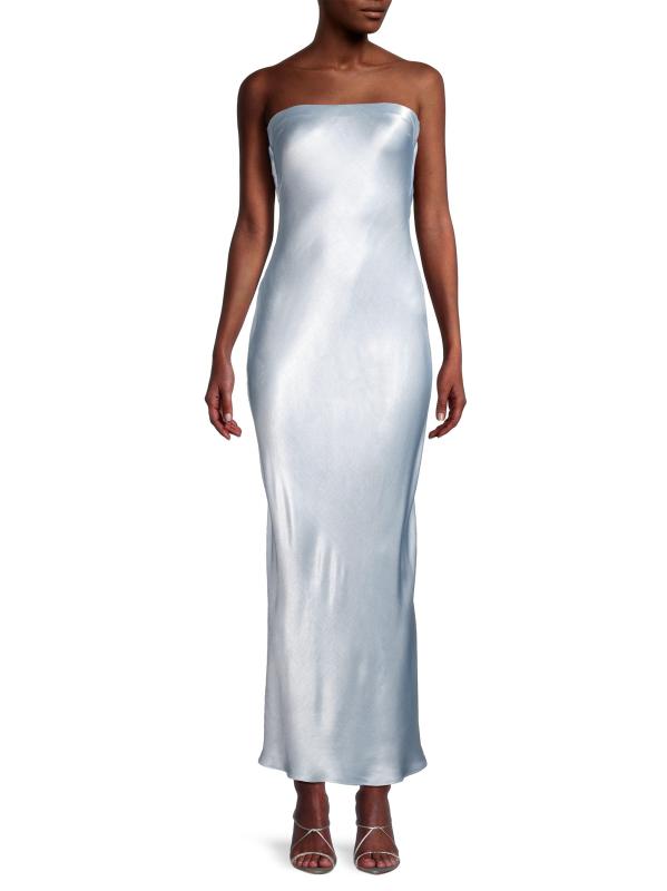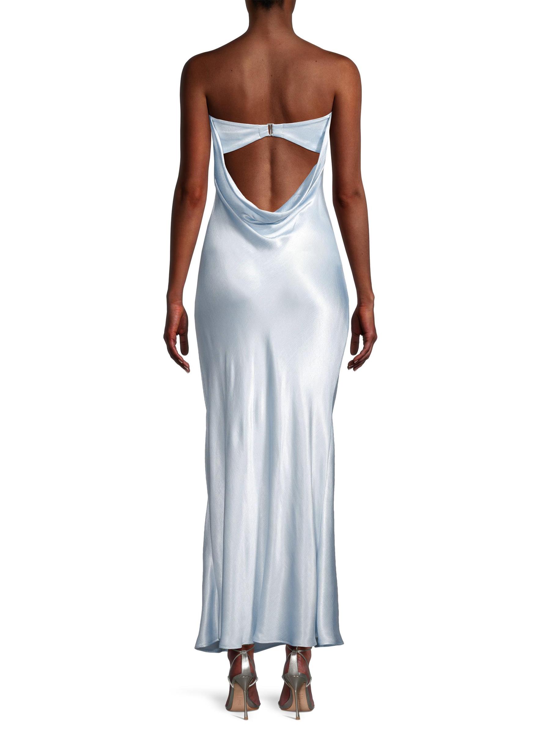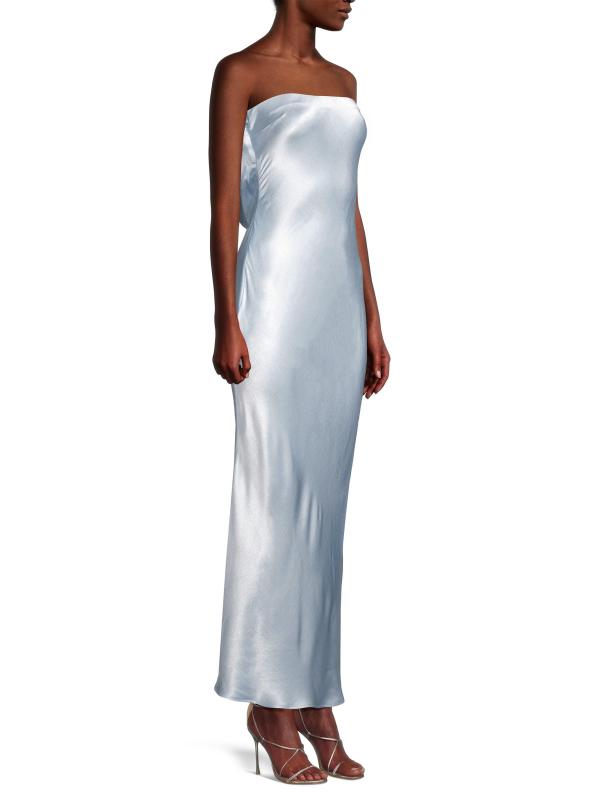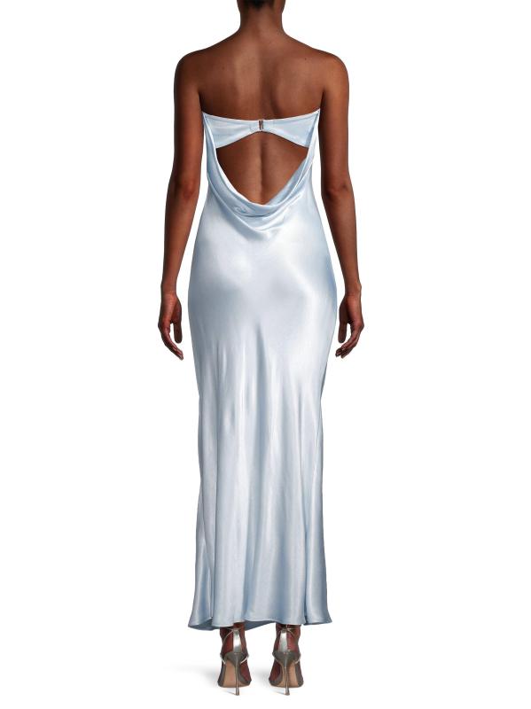 Bridge بقصة جذابة ومنحازة. يتميز هذا الفستان الطويل بظهر منخفض مميز مثبت بمشبك خلفي.