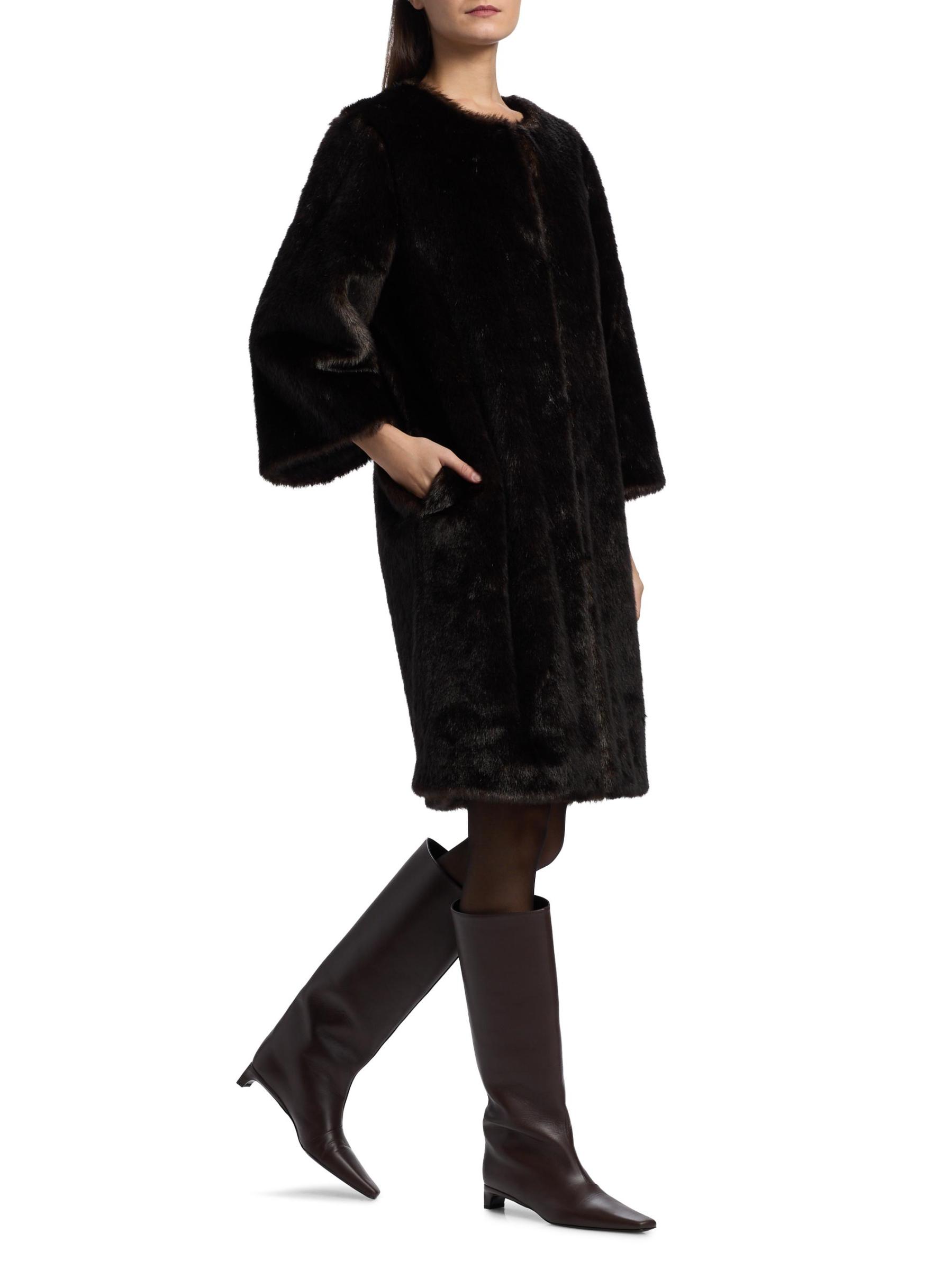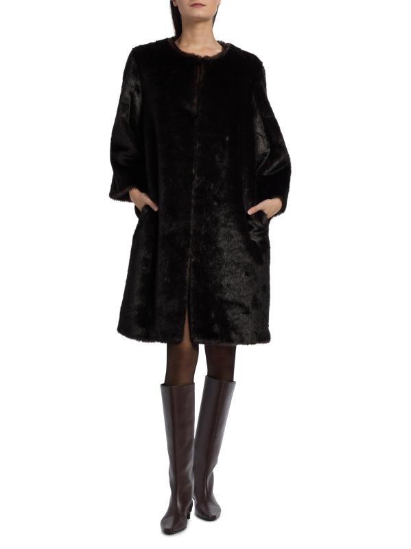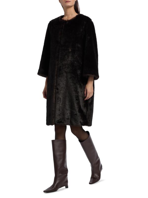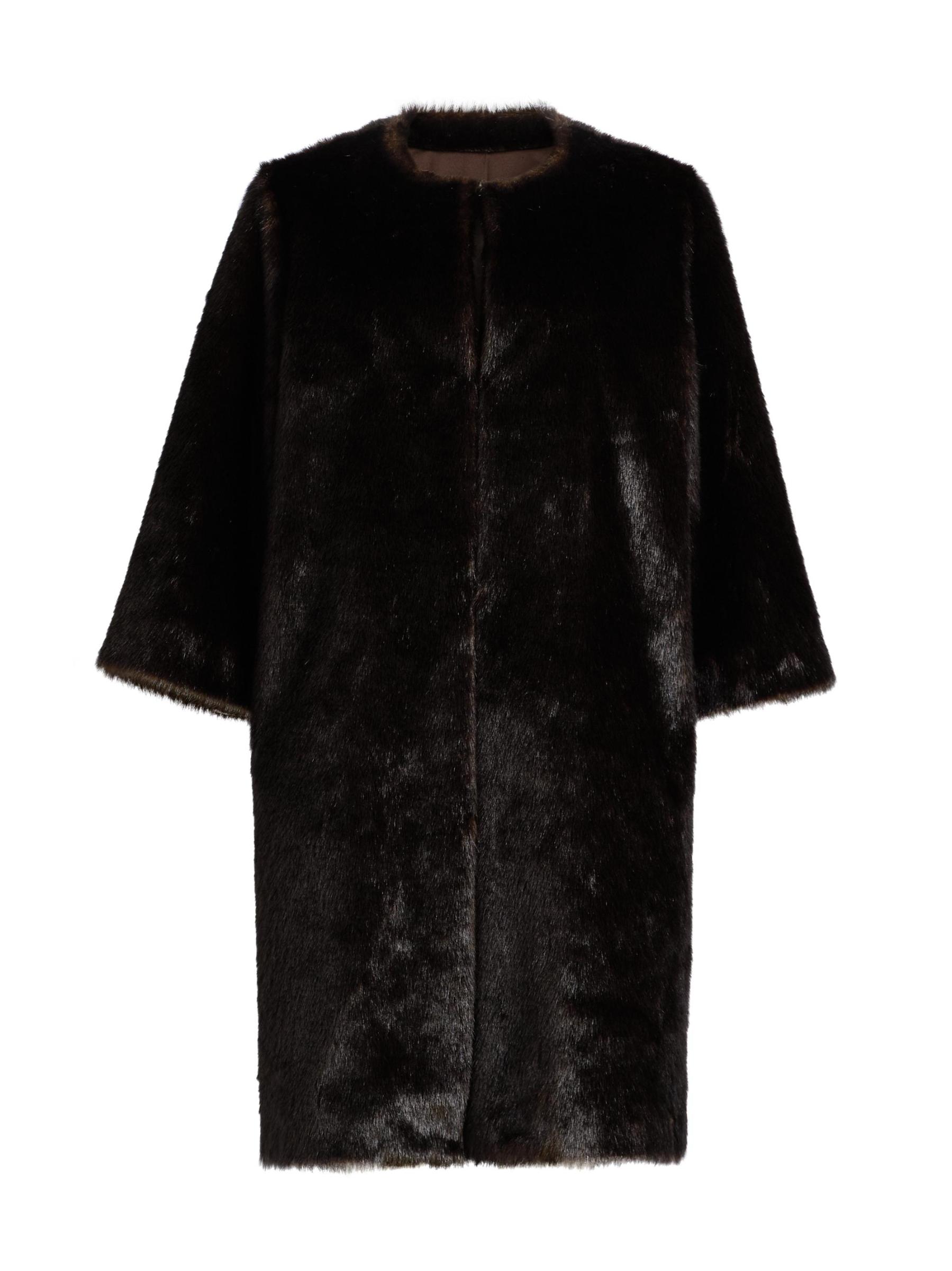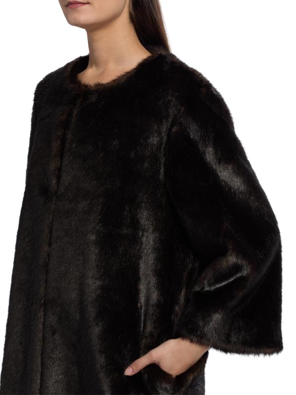 يتميز معطف مور من Loulou de Saison، المصنوع من الفرو الصناعي، بتقويرة مستديرة وأكمام طويلة وجيوب جانبية.