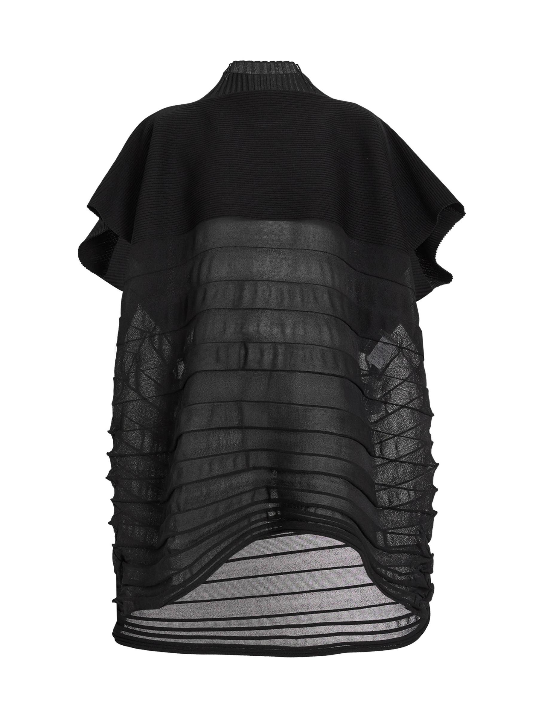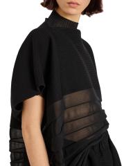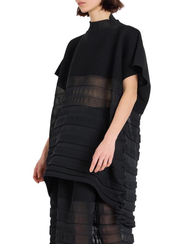 تتميز بلوزة Moving Sheer المحبوكة من Issey Miyake بياقة عالية وهمية وأكمام قصيرة وحواف مكشكشة عند الحافة.