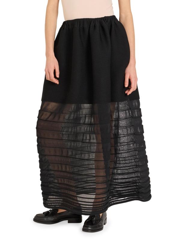 تتميز تنورة Moving Sheer المحبوكة من Issey Miyake بخصر مطاطي وحواف مكشكشة عند الحافة وجيوب على درزات.