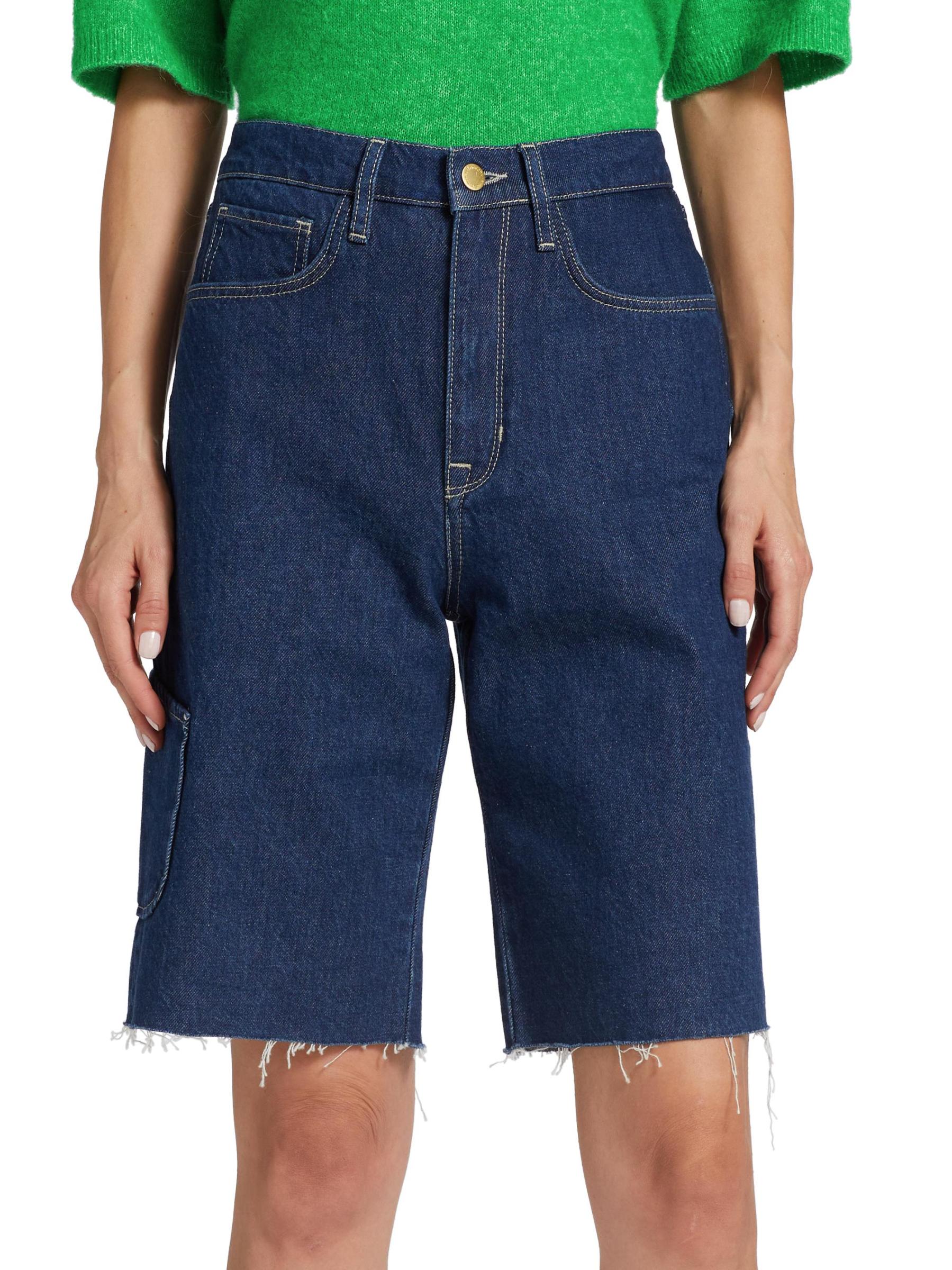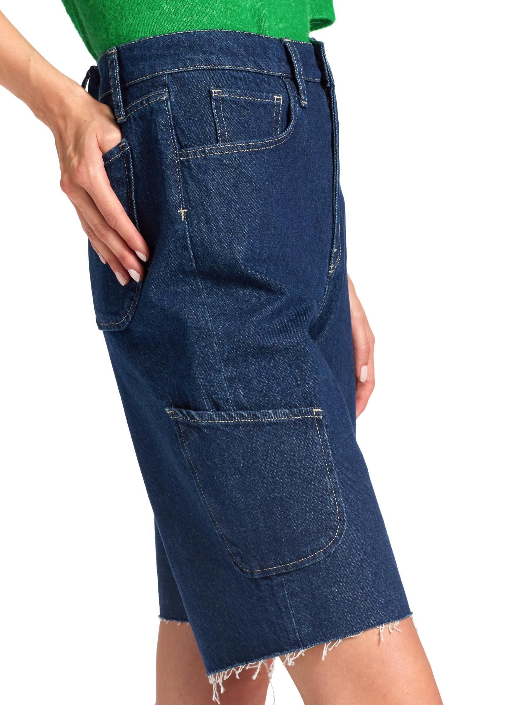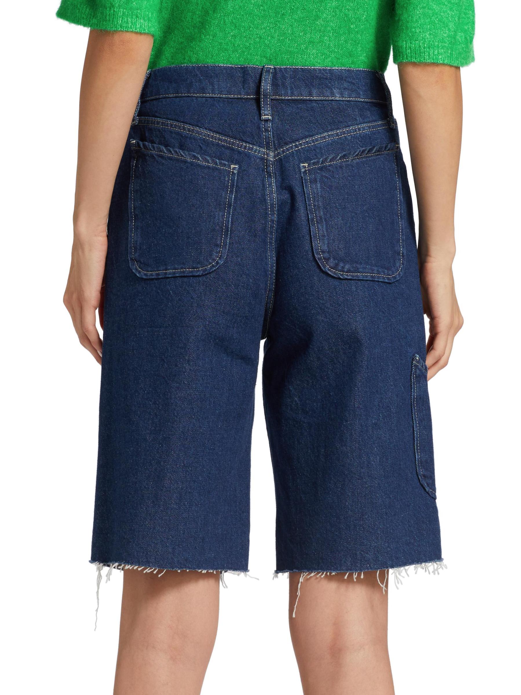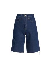 شورت Ms. Cali من Triarchy مصنوع من الدنيم بأسلوب واسع الساق.حلقات الحزام إغلاق بأزرار زيب فلاي طراز بخمسة جيوب جيب خارجي جانبي حافة ذات حافة خام قطن يُغسل في الغسالة مستوردة
