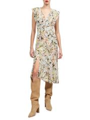 يتميّز فستان Nadia midi المصنوع من الحرير من Equipment بتصميم على شكل حرف A، وهو مزيّن بطبعات زهرية تجريدية وفتحة ثقب المفتاح في الخلف.