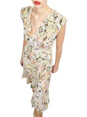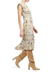 فستان متوسط الطول من الحرير بنقشة الزهور من ناديا