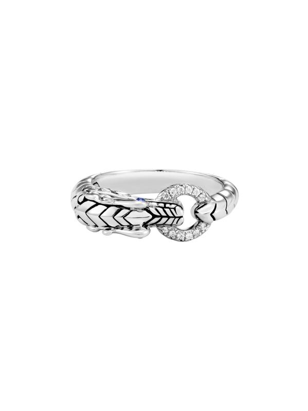 خاتم رأس التنين من الفضة الإسترلينية والماس والياقوت الأزرق