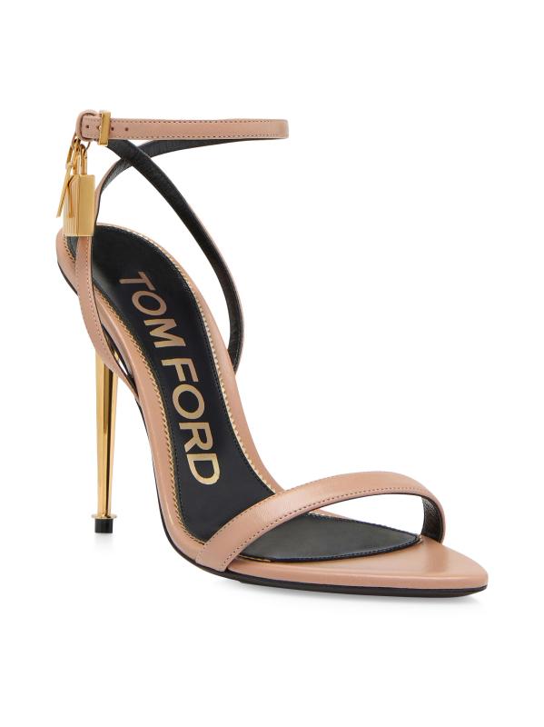 صندل Naked من Tom Ford مصنوع من الجلد. يتميز هذا الزوج بقفل مميز في حزام الكاحل الأنيق.