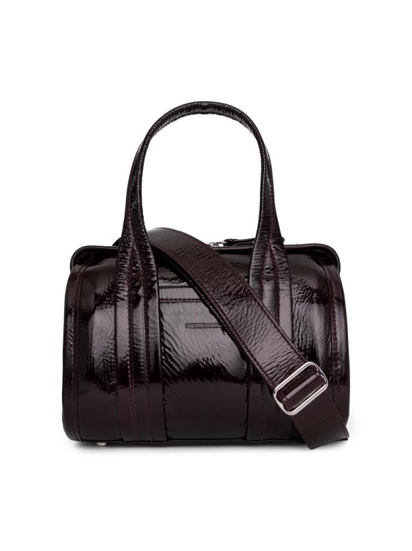 حقيبة نانو كاب ذات المقبض العلوي من بيير هاردي مصنوعة من الجلد اللامع، وتتميز بحزام قابل للإزالة وأقدام معدنية واقية.