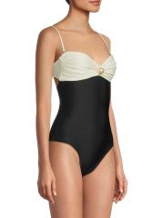 بدلة السباحة Nastya المكونة من قطعة واحدة من Shani Shani Shemer مصنوعة من قماش قابل للتمدد ومصممة برقبة على شكل قلب وصدر مكشكش بدون حمالات مع لؤلؤة صناعية في المنتصف وفتحة ظهر مرحة.رقبة على شكل قلب أحزمة سباغيتي قابلة للتعديل والإزالة إغلاق بمشبك 80% نايلون/ 20% إليستين غسيل يدوي مستوردة