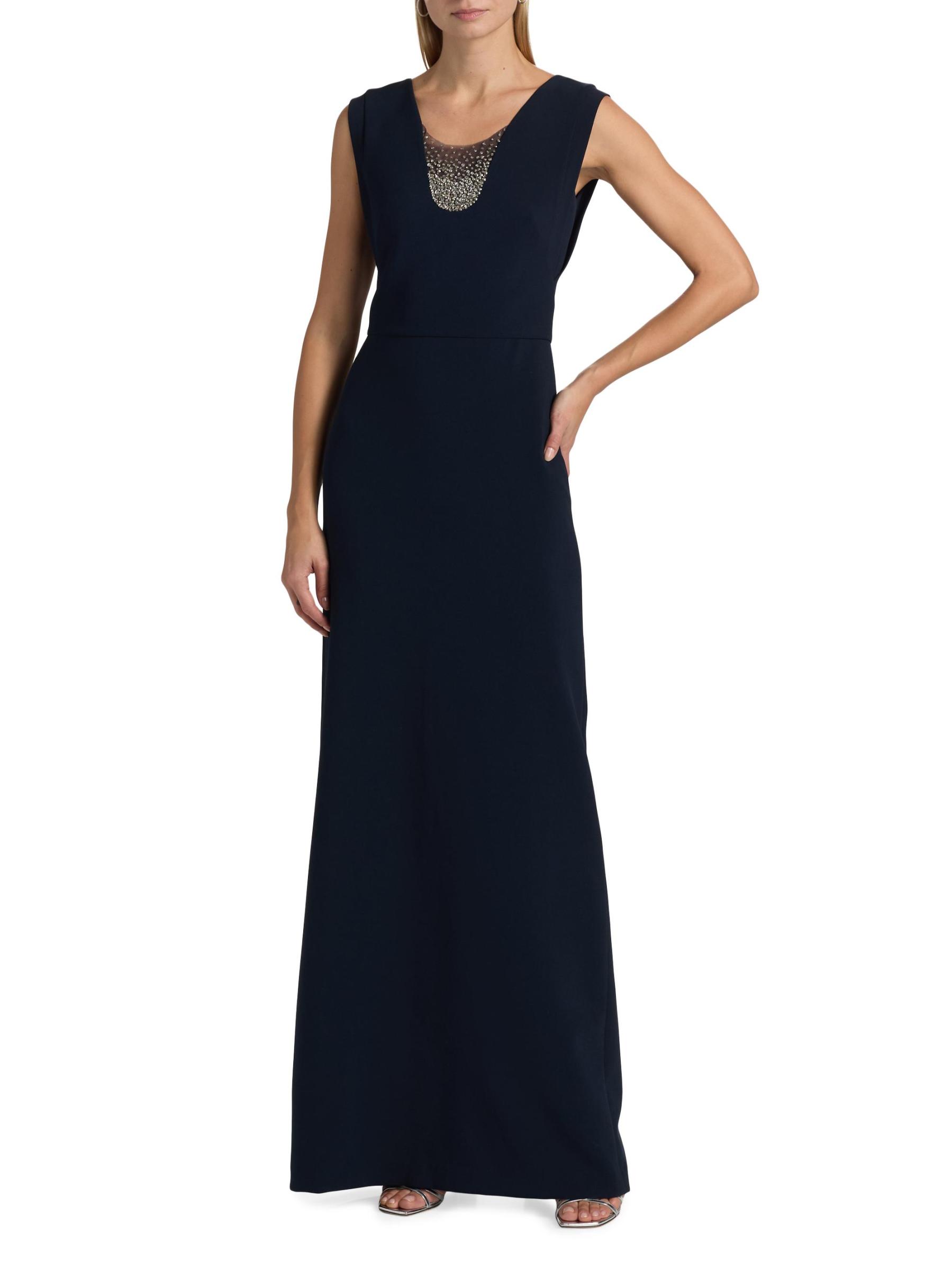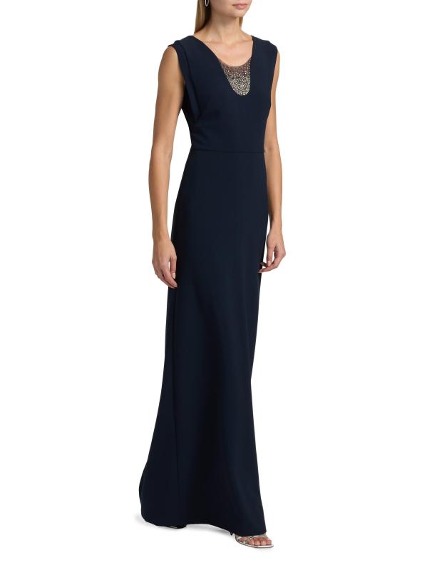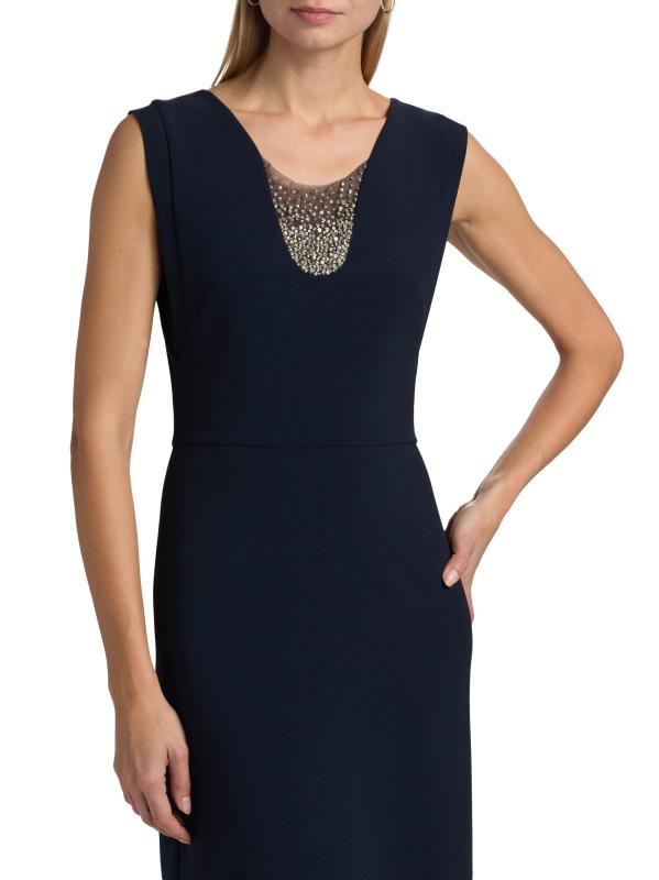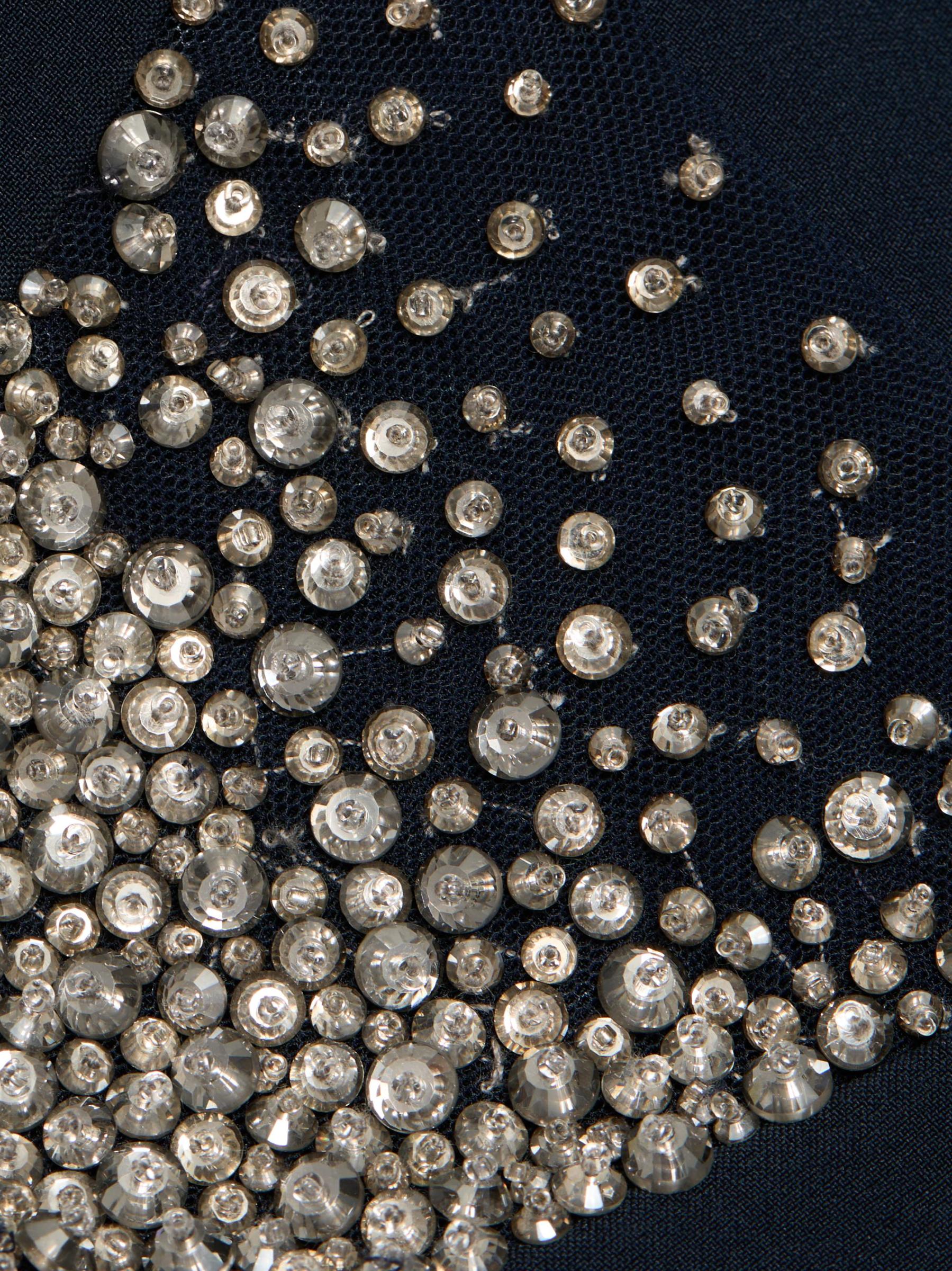 Babi من الكريب المرن ويتميز بلوحة شفافة ذات تصميم طيفي مزين بالكريستال.سكوبنك بدون أكمام إغلاق بسحّاب خلفي 92% بوليستر/ 8% سباندكس البطانة: 100% بوليستر تنظيف جاف مستوردة