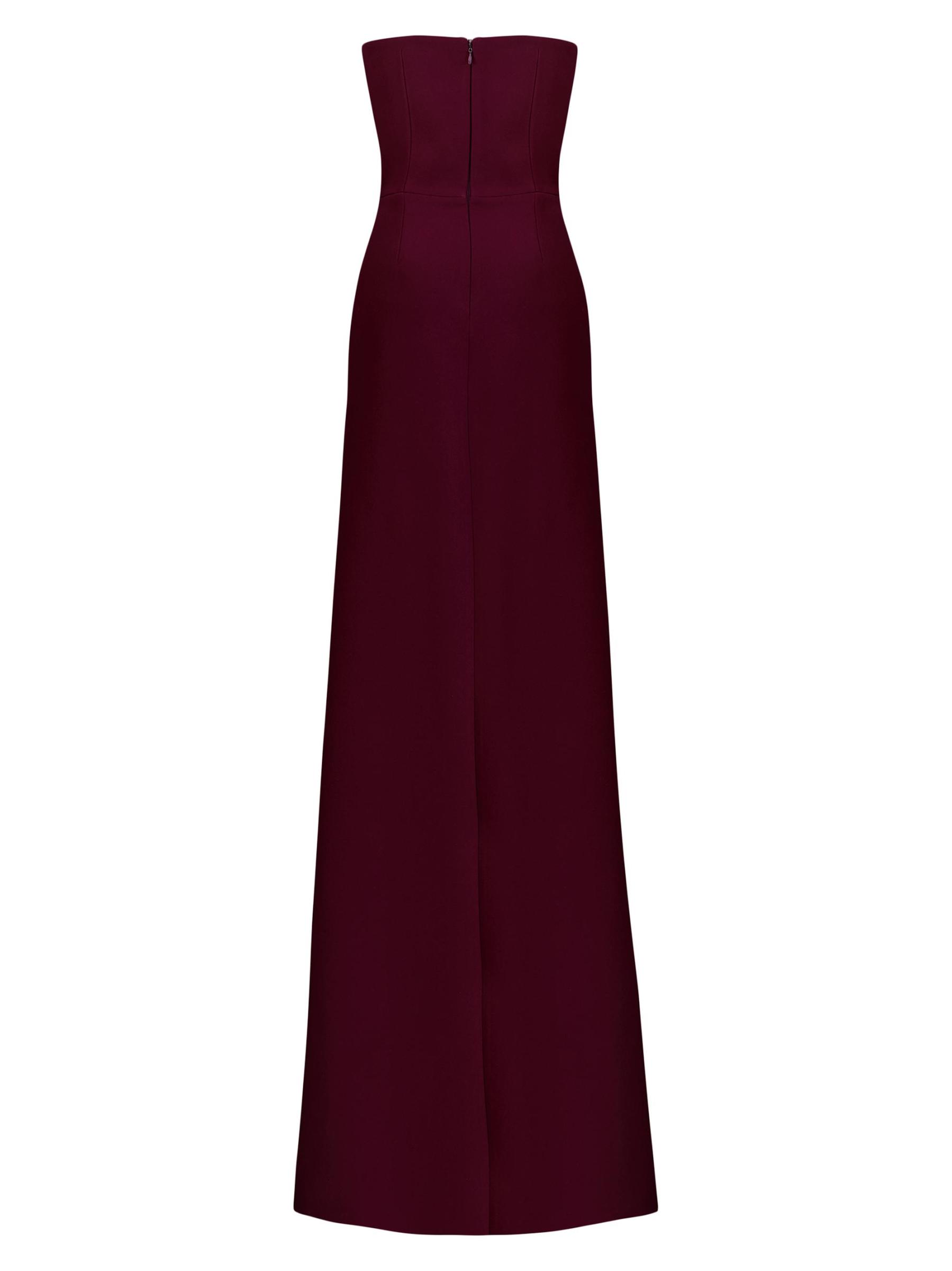 يتميز فستان Nefertiti بدون حمالات من The New Arrivals Ilkyaz Ozel بصدّار عظمي وتنورة مزينة بالساتان بحافة مشقوقة من الأمام.