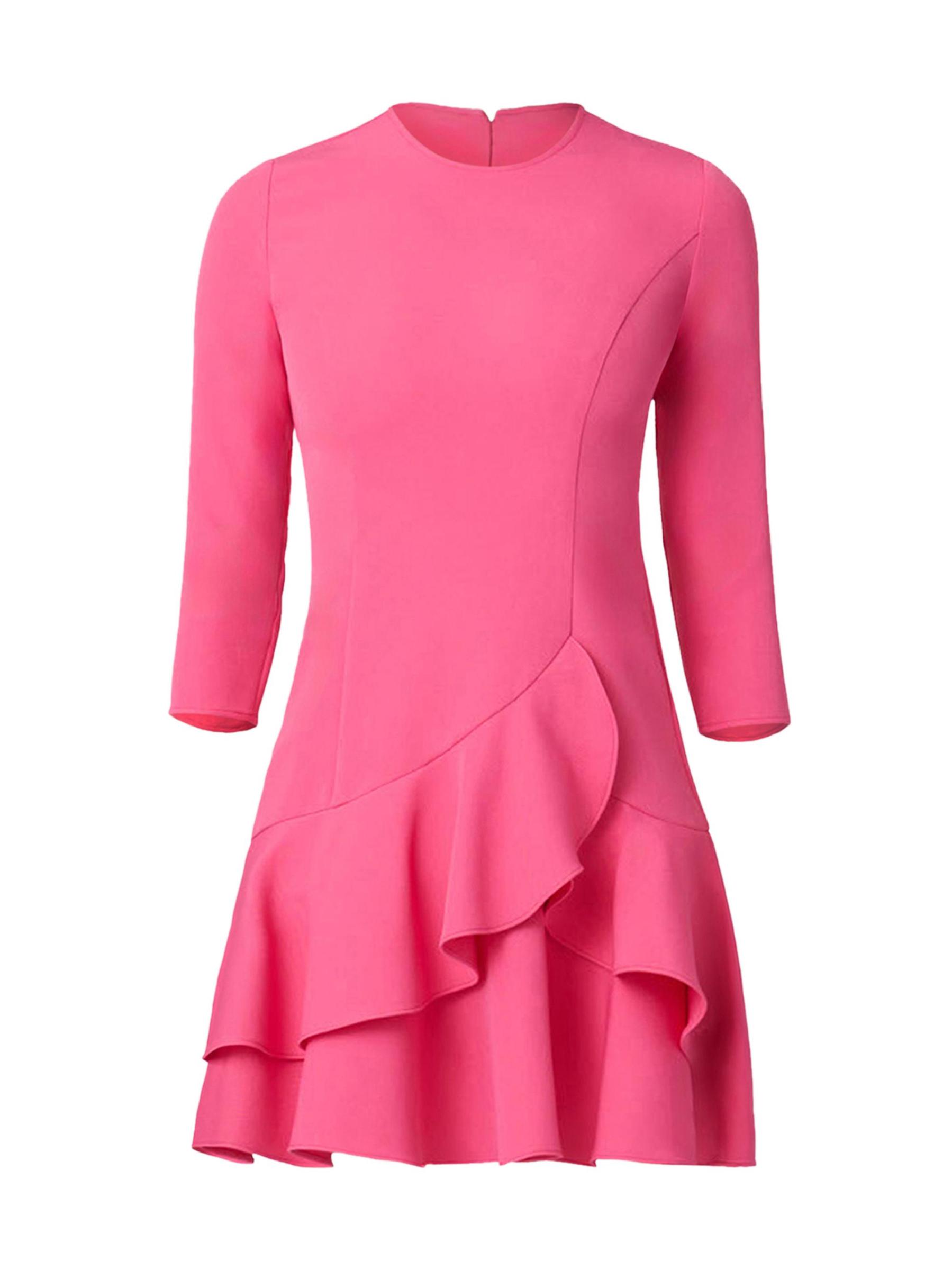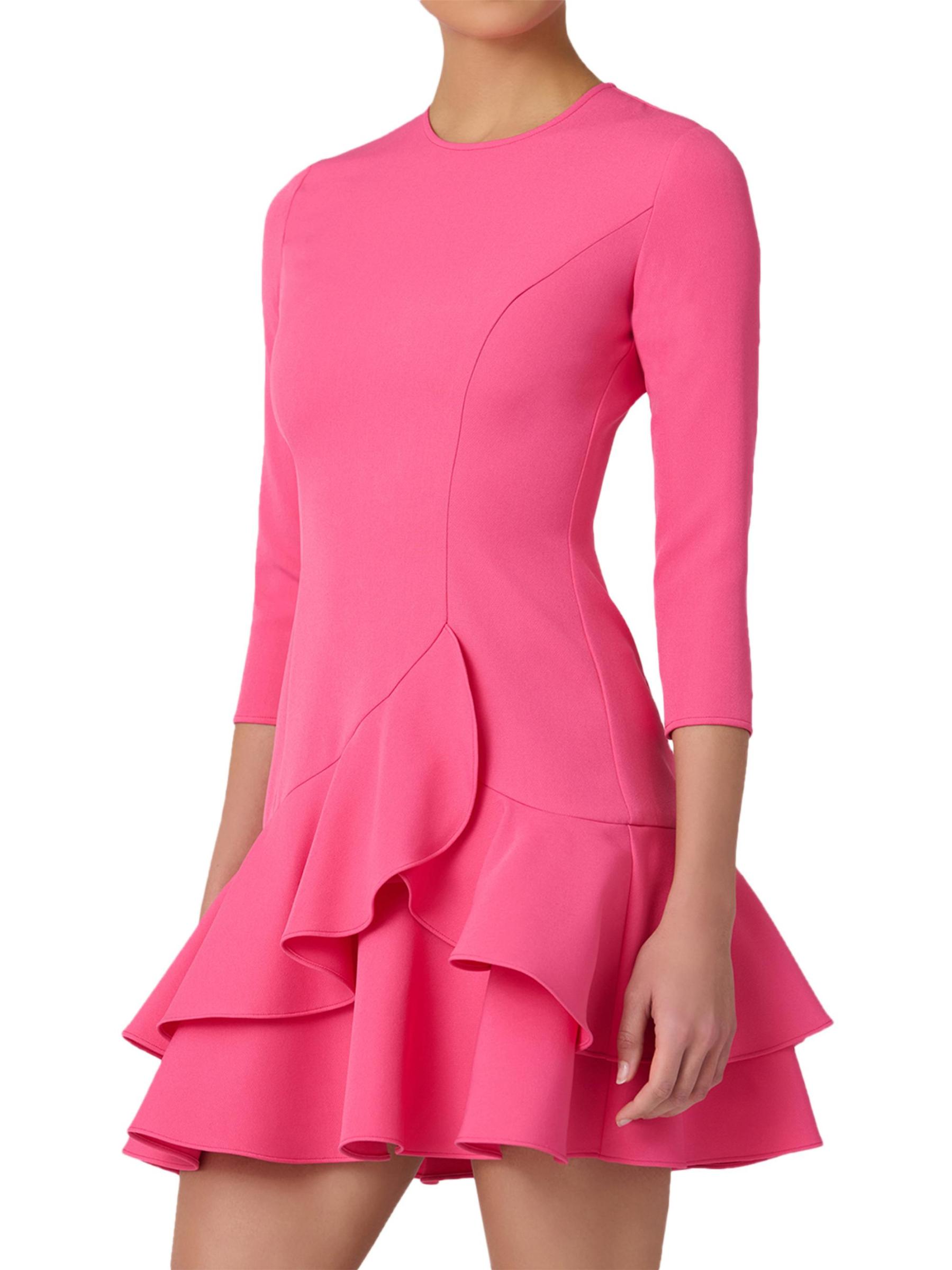 يتميّز فستان Nessa القصير من Shoshanna المصنوع من الكريب المرن بتنورة مكشكشة متعددة الطبقات مع درزات الأميرة لتشكيل الصدّار.