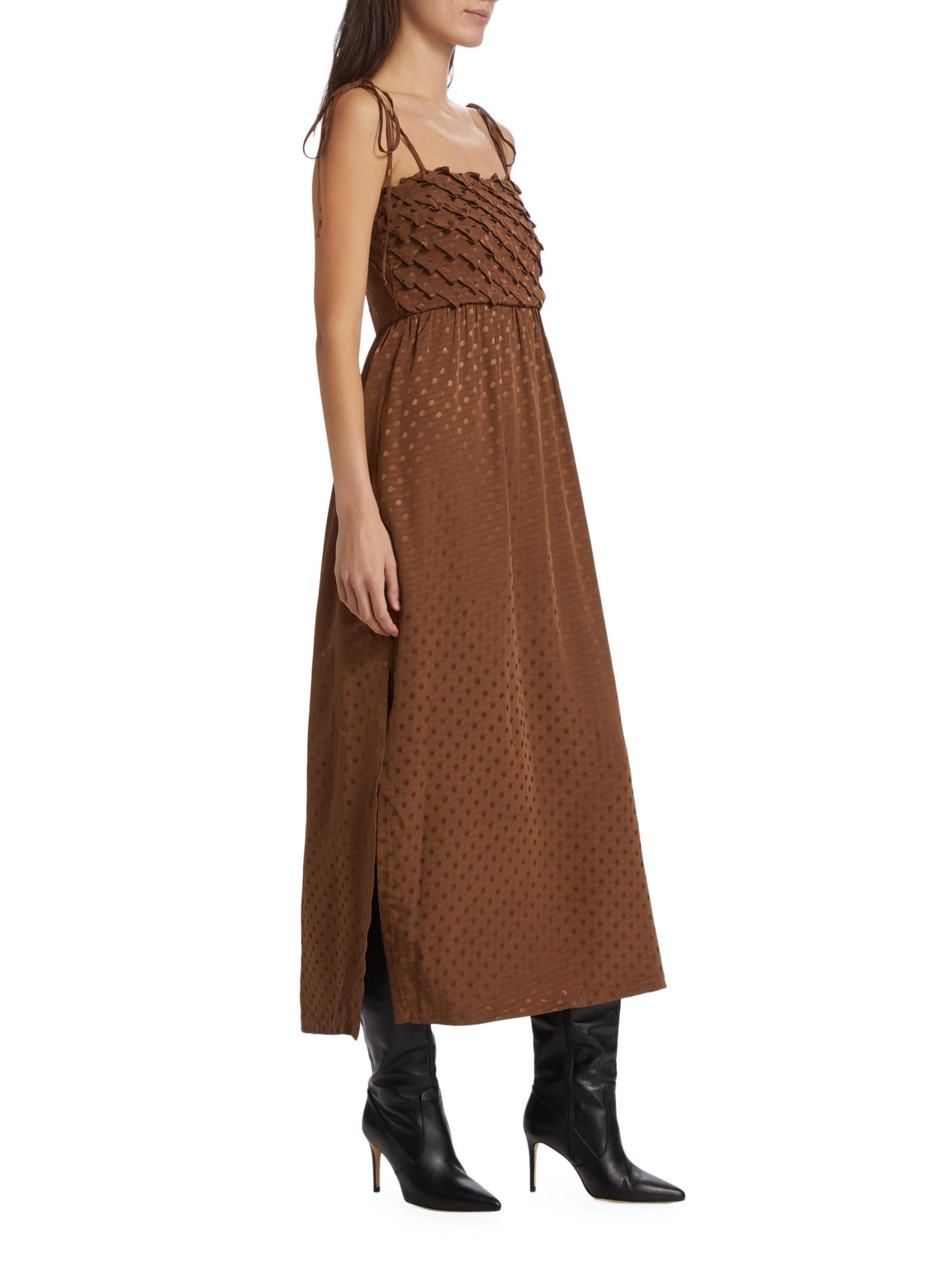 يتميز فستان Nicoletta المتوسط المنقط من Atelier 17.56 برقبة مربعة وأحزمة سباغيتي ذاتية الربط وصدّار مطوي.