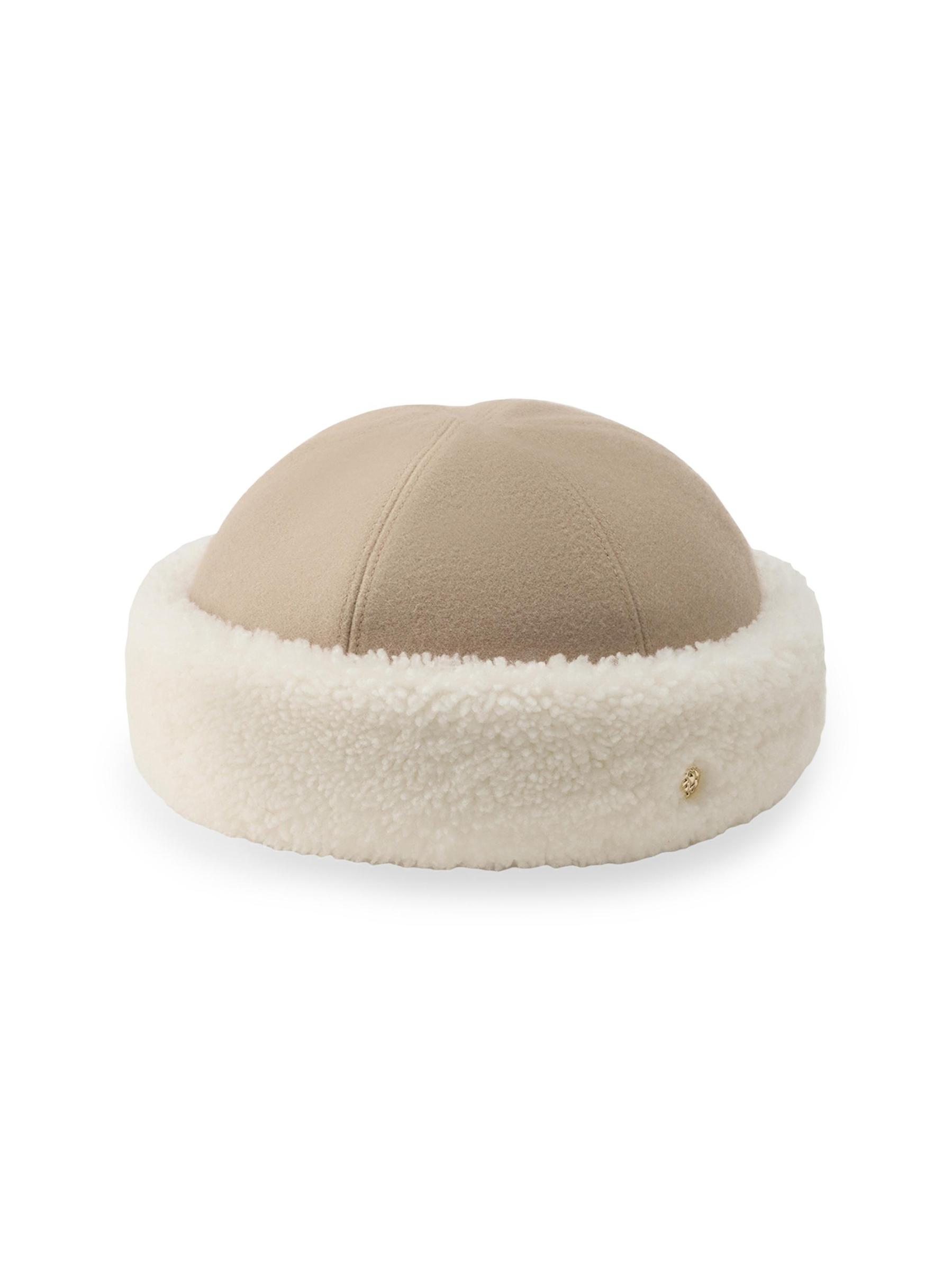 تتميّز قبعة نيكا هذه المصنوعة من الصوف المصقول من هيلين كامينسكي بزخرفة من قماش الشيرلينغ المخملي يمكن ارتداؤها مكبّلة أو على الرأس.