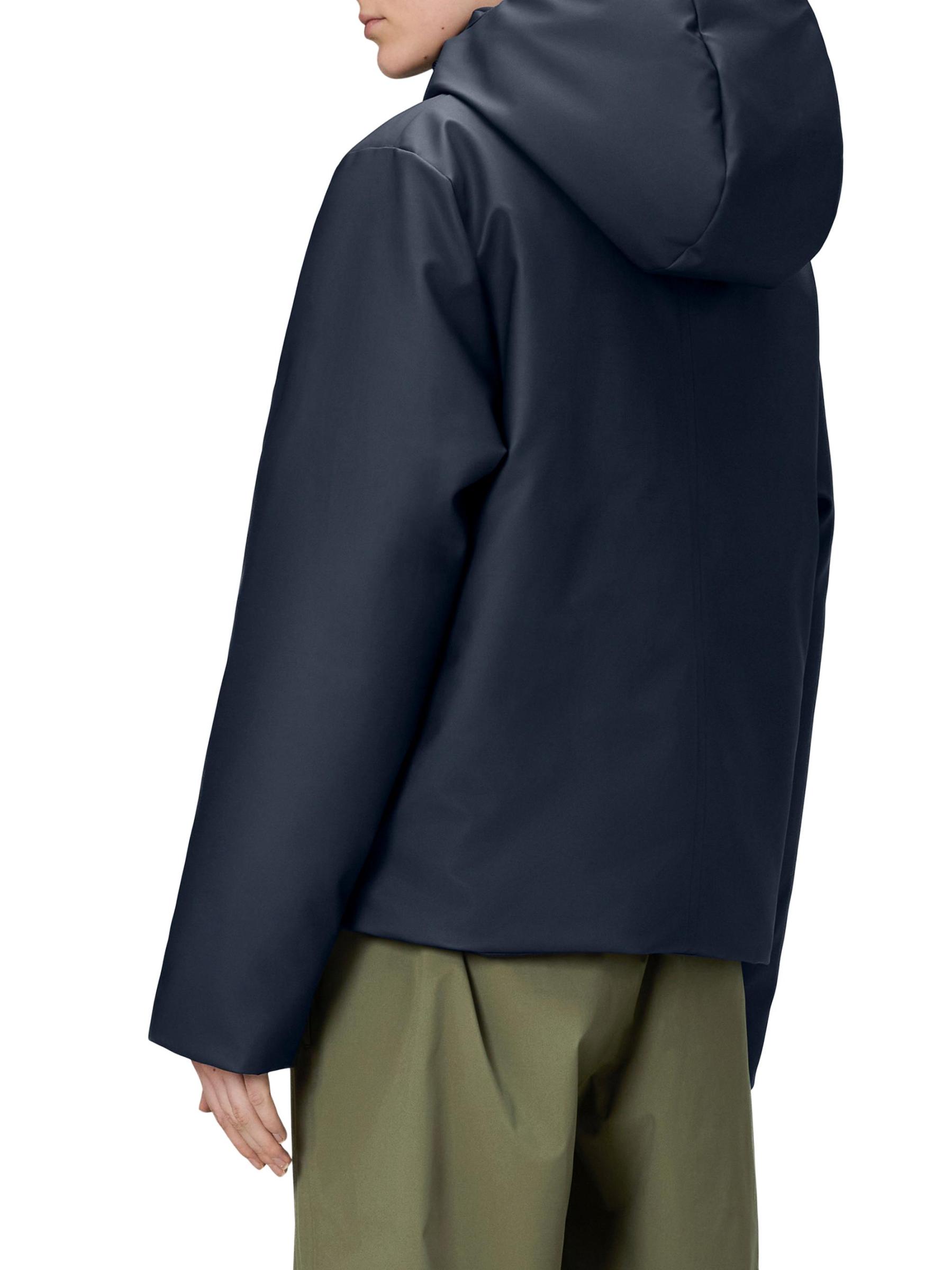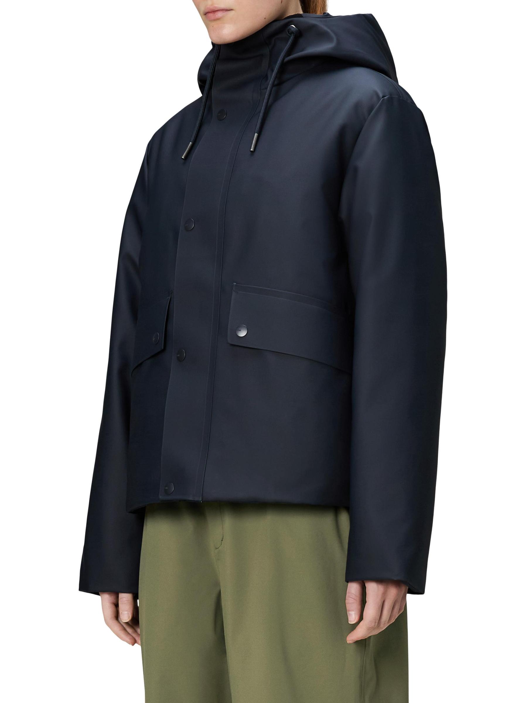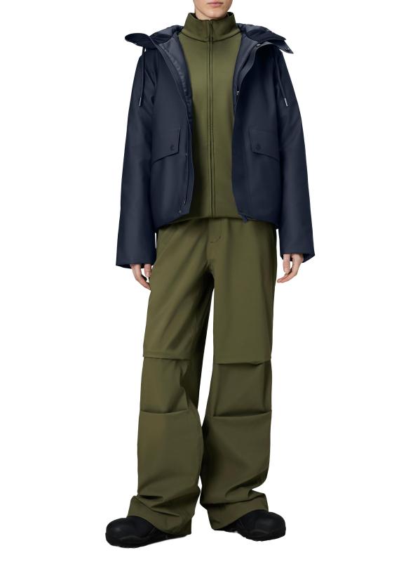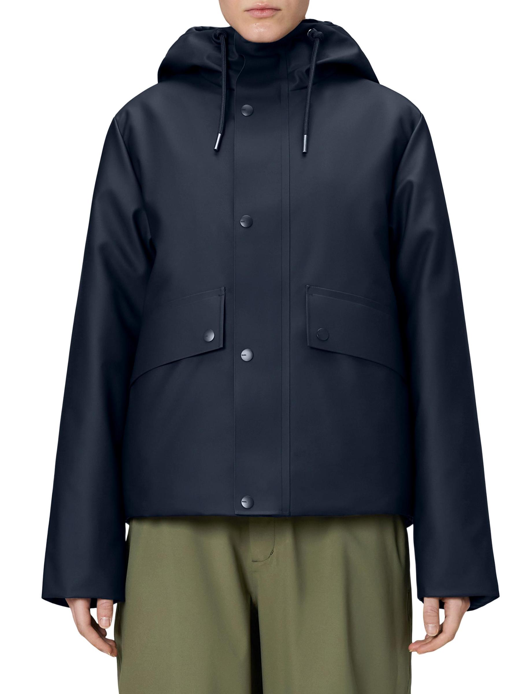 من مجموعة Nome. تتميّز سترة نومي المقاومة للماء هذه من رينز بتصميم قصير، وهي مزوّدة بغطاء رأس برباط وجيوب جانبية قابلة للطي وسحّاب أمامي مزوّد بفتحة على شكل عاصفة.