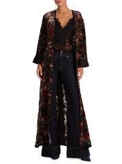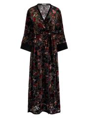 يتميز رداء نومي المستوحى من الكيمونو الزهري من Alice + Olivia، والمصنوع من مزيج الحرير الفاخر، بلمسة نهائية مخملية خفيفة وحزام قابل للإزالة.