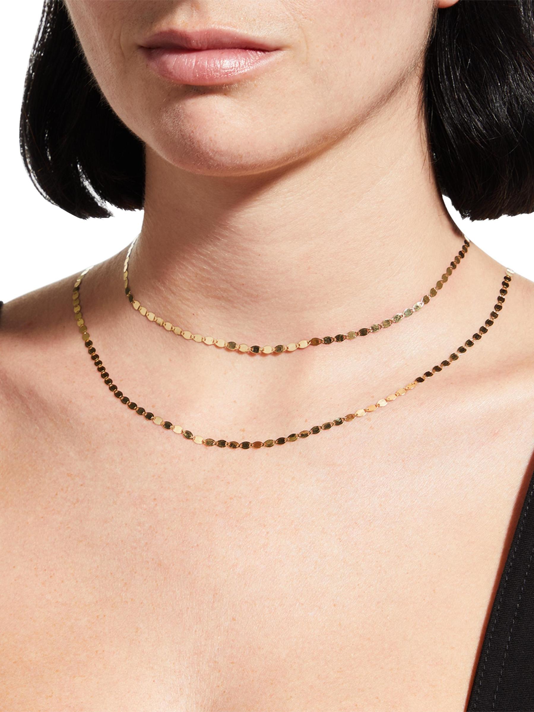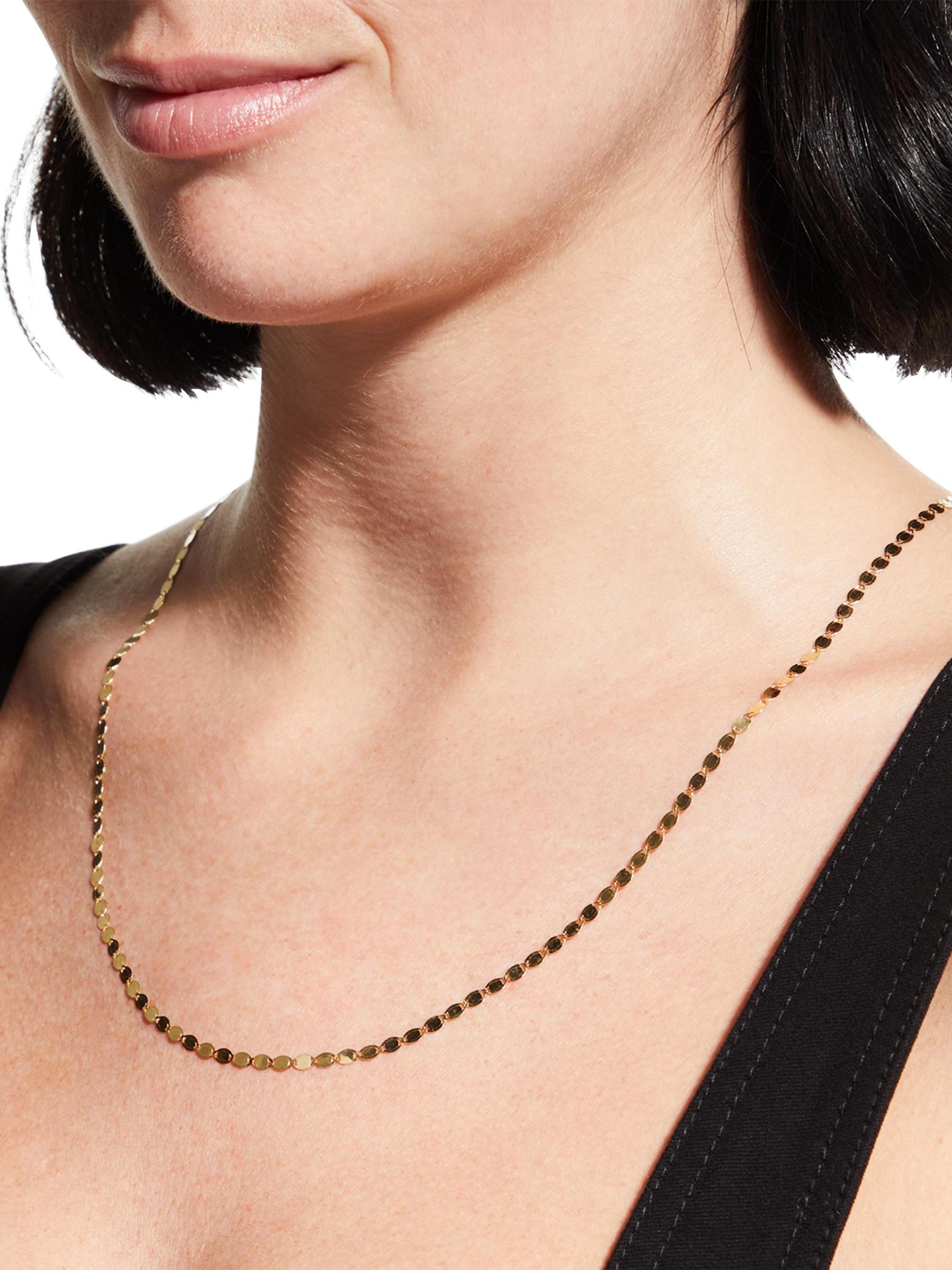 قلادة Lana Nude مصنوعة من الذهب الأصفر عيار 14 قيراطًا، وتتميز بروابط سلسلة مارينر بلمسة نهائية مصقولة.ذهب أصفر عيار 14 مشبك لوبستر صُنع في الولايات المتحدة الأمريكية