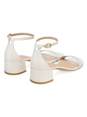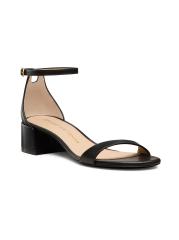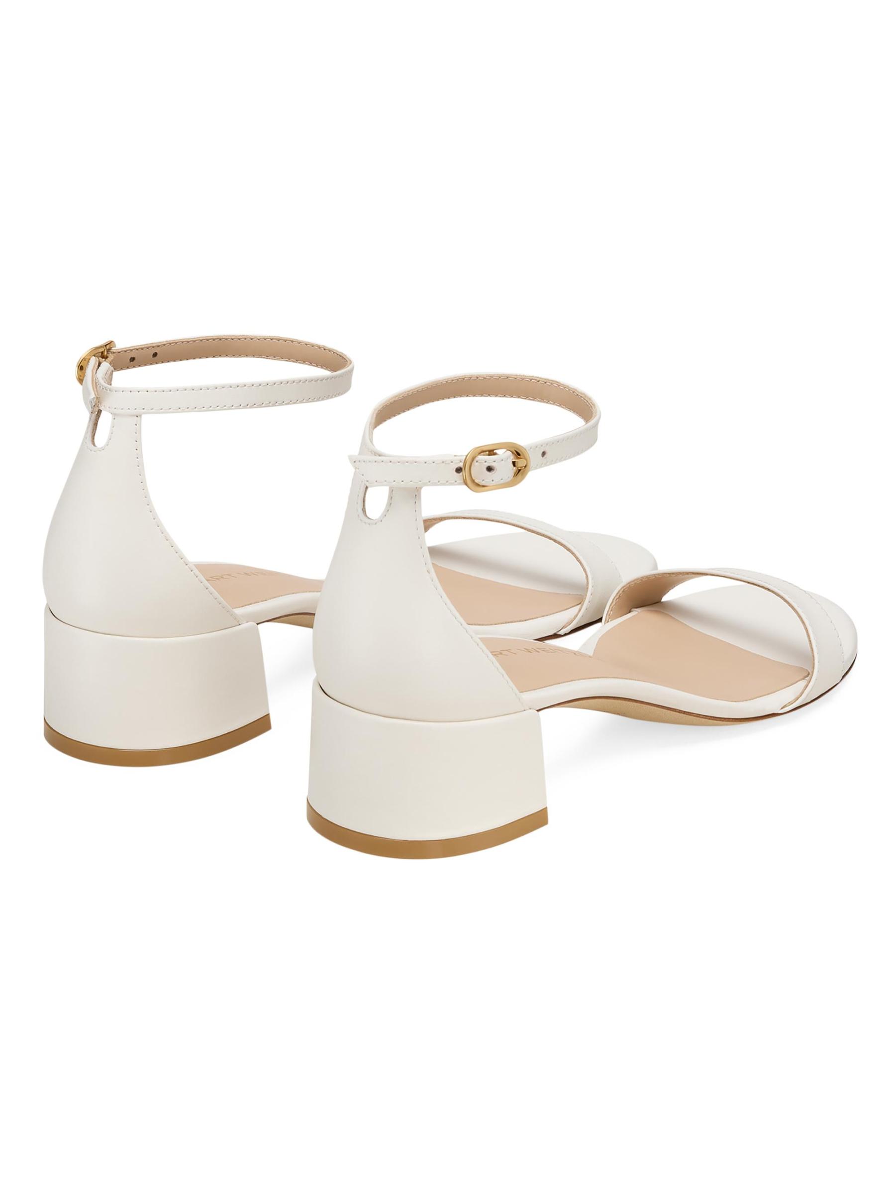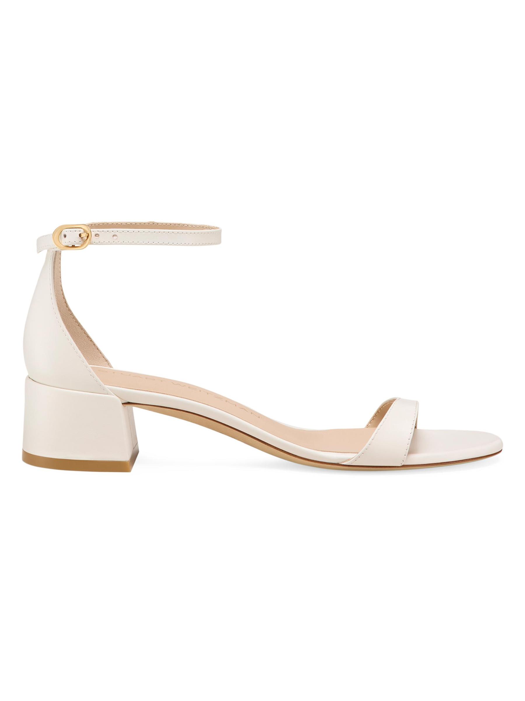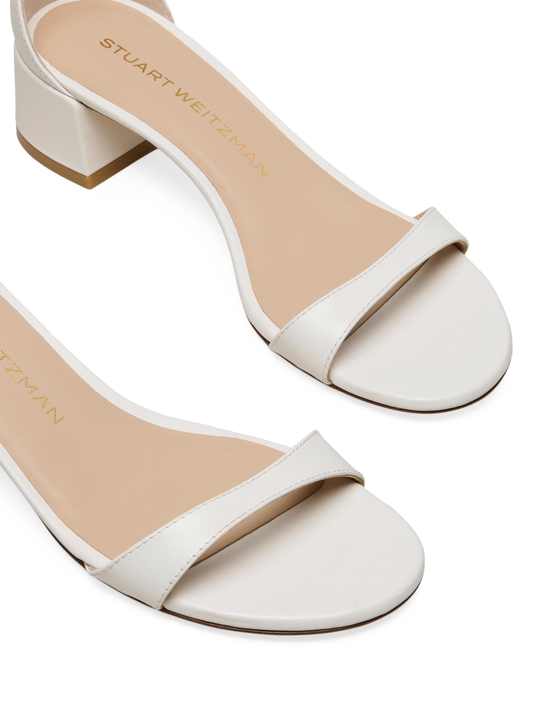 صُنع صندل Nudist بكعب عريض من Stuart Weitzman في إسبانيا ويتميز بحزام كاحل قوي.