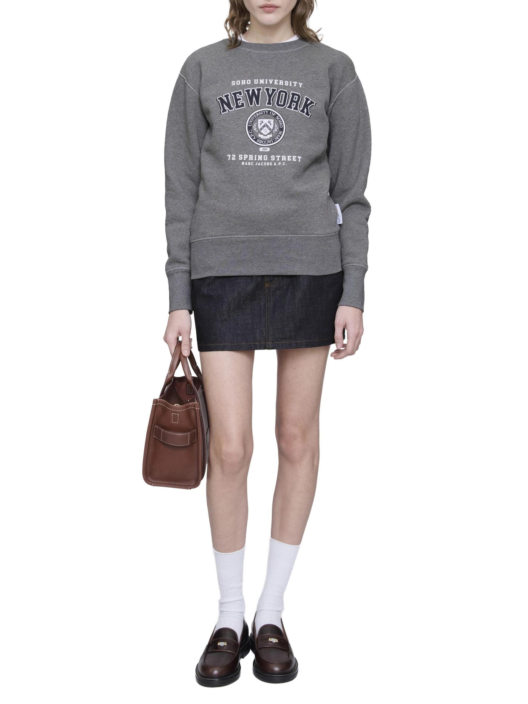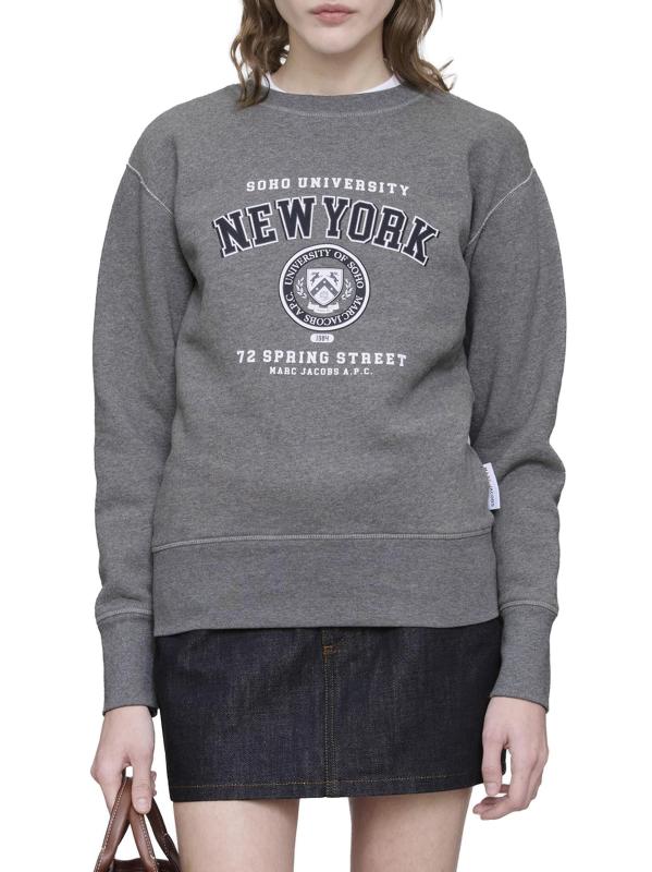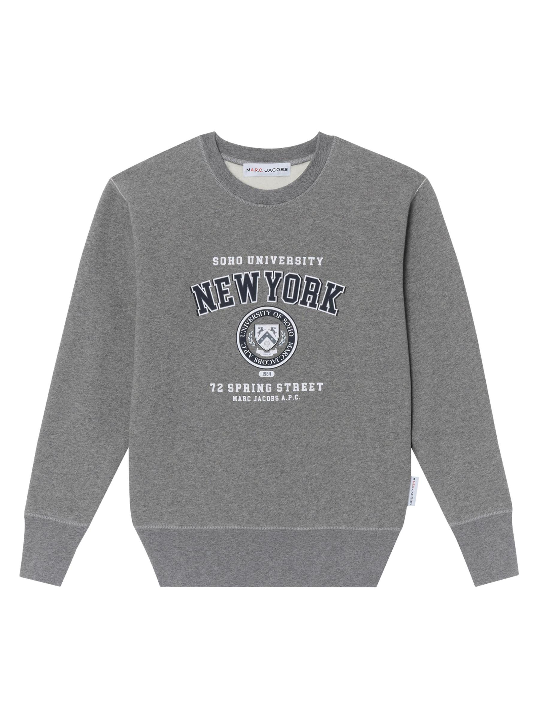 صُنع هذا السويت شيرت مارك جاكوبس x A.P.C. من القطن ويتميز برسومات جماعية تحمل العلامة التجارية المشتركة «جامعة سوهو نيويورك» على الصدر. هذه القطعة ذات الأكمام الطويلة تكتمل برقبة مستديرة وتقليم مضلع.