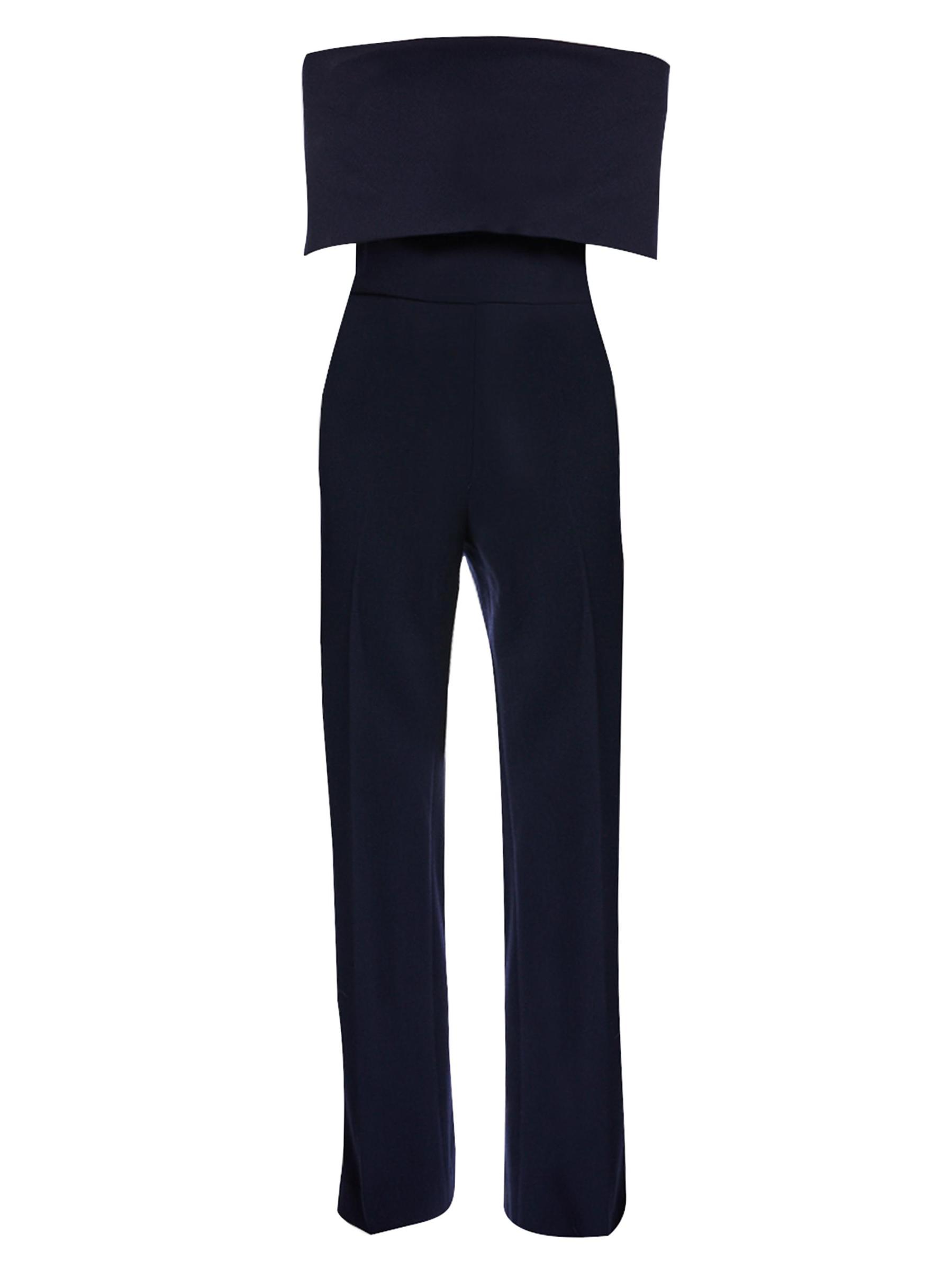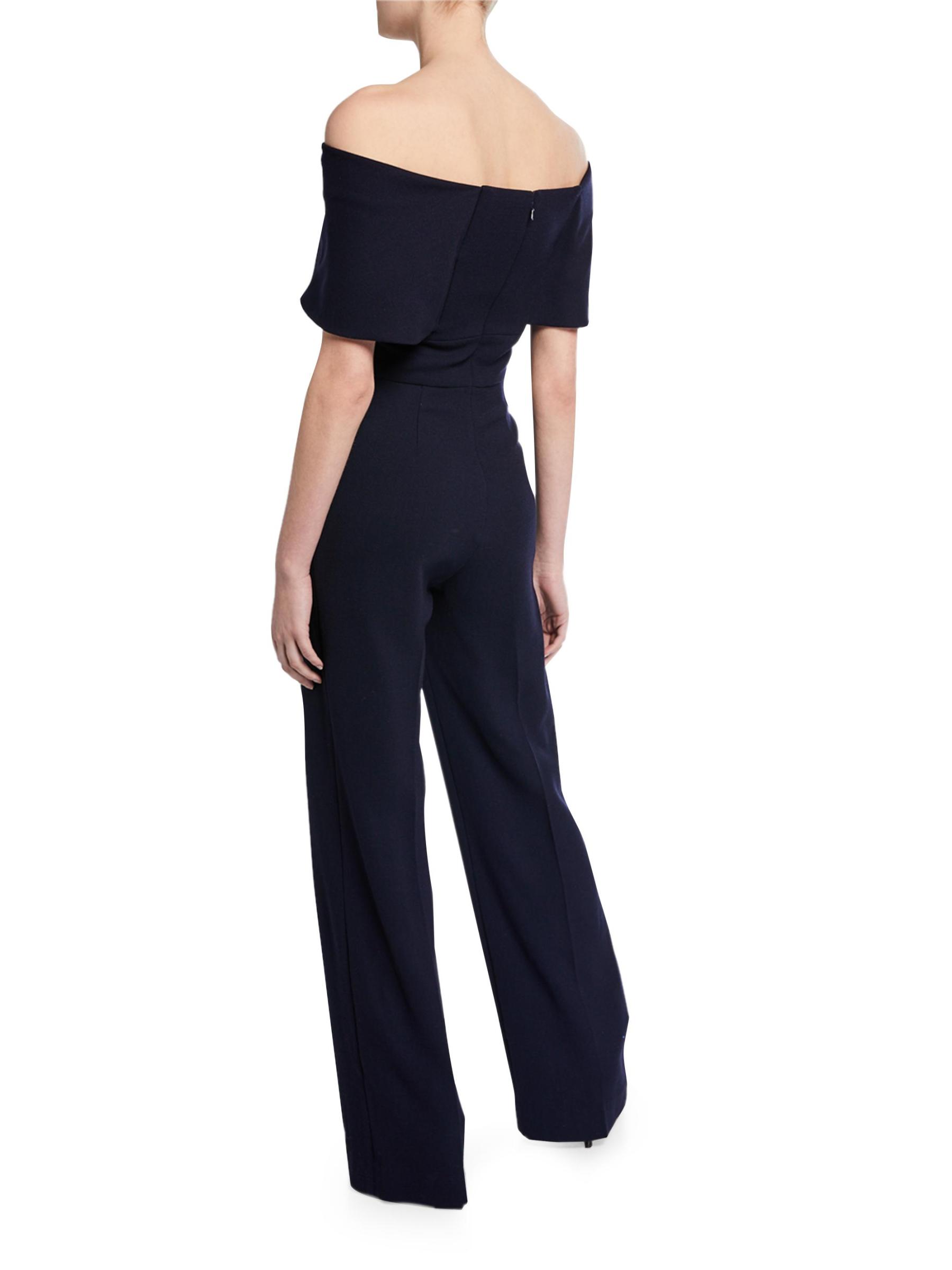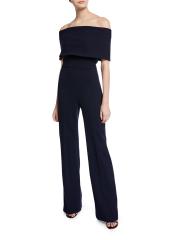 تتميّز بدلة Lela Rose المصنوعة من الكريب القابل للتمدد بتقويرة مكشوفة الكتفين مع زخرفة مطوية.