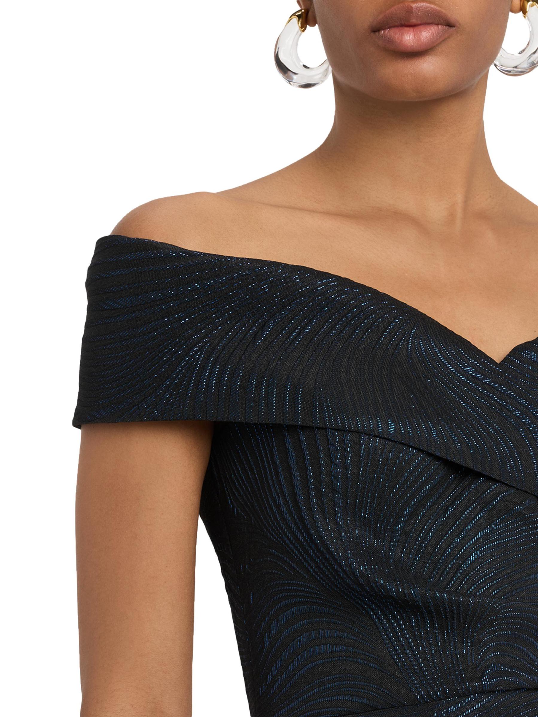 فستان جاكار لامع مكشوف الكتفين