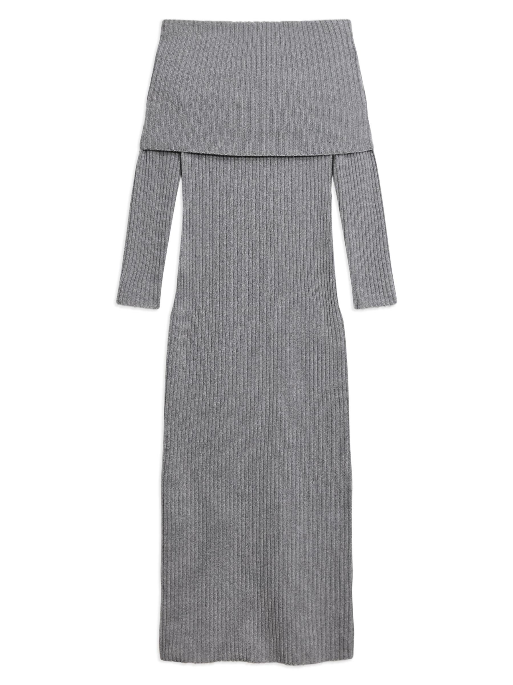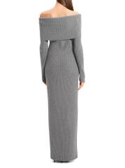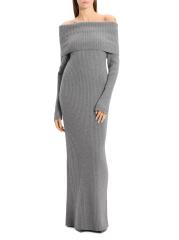 فستان ماكسي من الصوف والكشمير المضلع بأكتاف مكشوفة