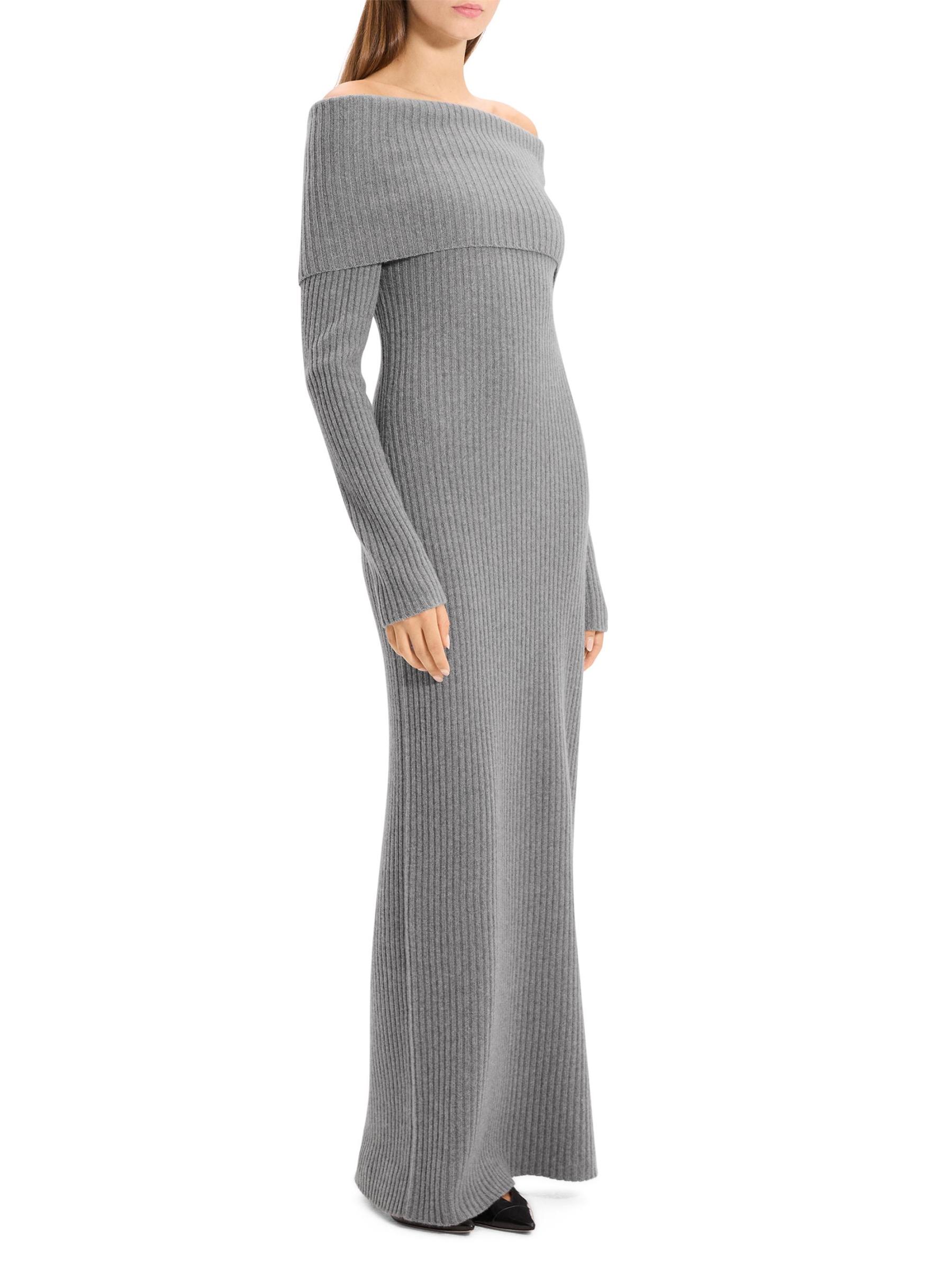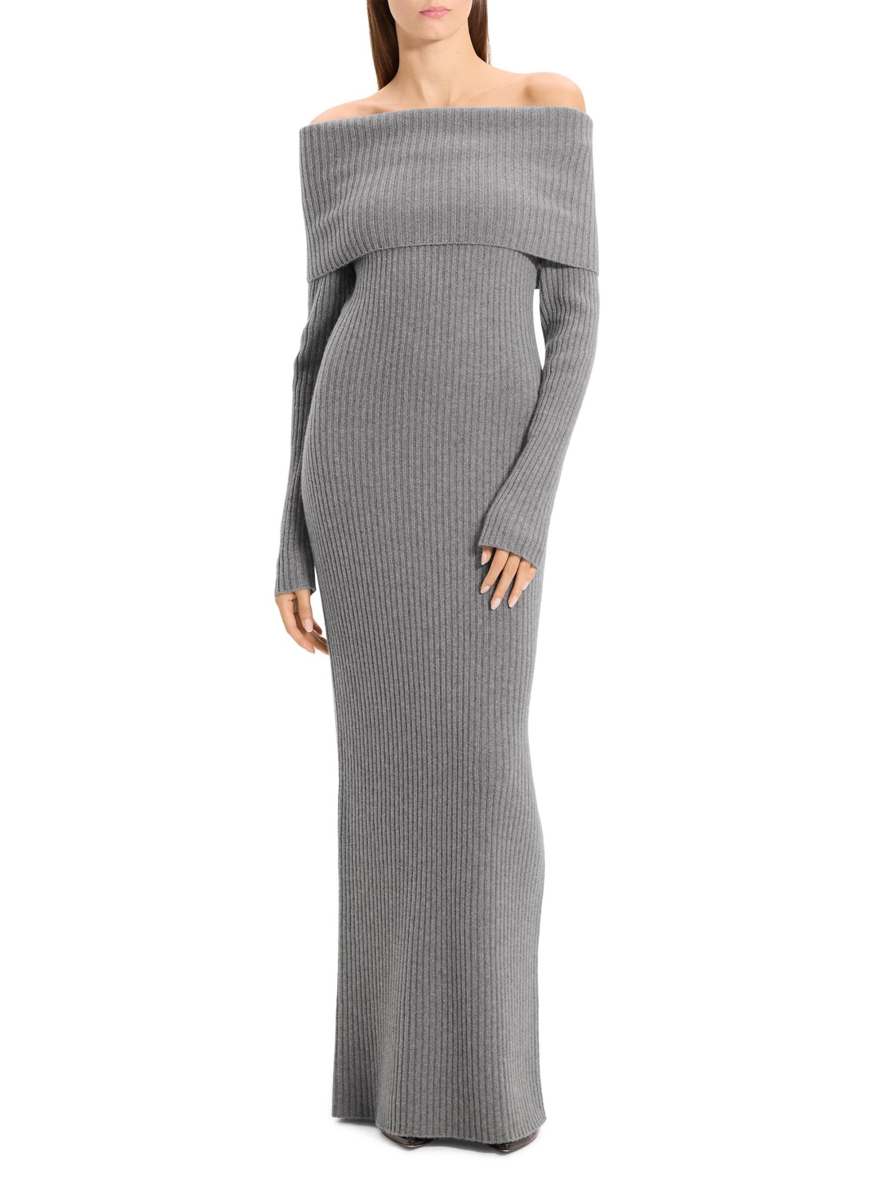 صُنع هذا الفستان الطويل ذو الأكتاف المكشوفة والأكمام الطويلة من Theory من مزيج الصوف والكشمير، وهو مصمم بهيكل مضلع على شكل بوديكون.