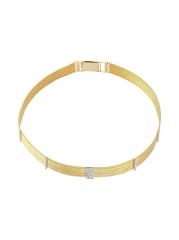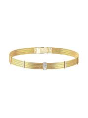 من مجموعة Olden. قلادة Her Story منسوجة يدويًا من الذهب الأصفر المصقول عيار 14 قيراطًا، وهي مزينة بقضبان أنيقة مرصعة بالألماس.الماس، 0.43 طن درجة لون الماس: F-G درجة وضوح الماس: VS ذهب أصفر عيار 14 مشبك قابل للطي مستوردة